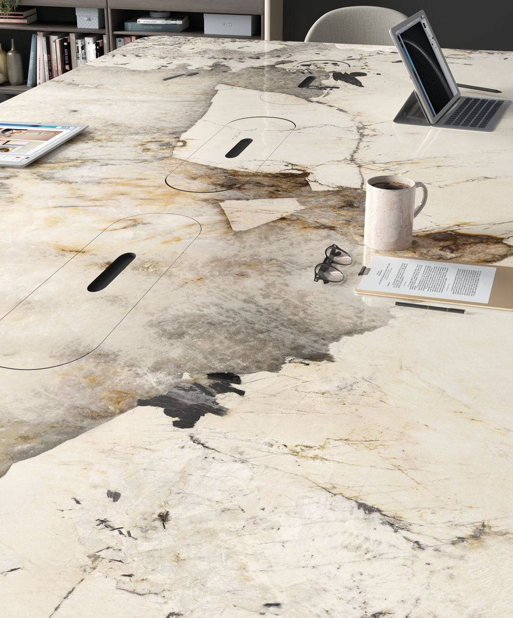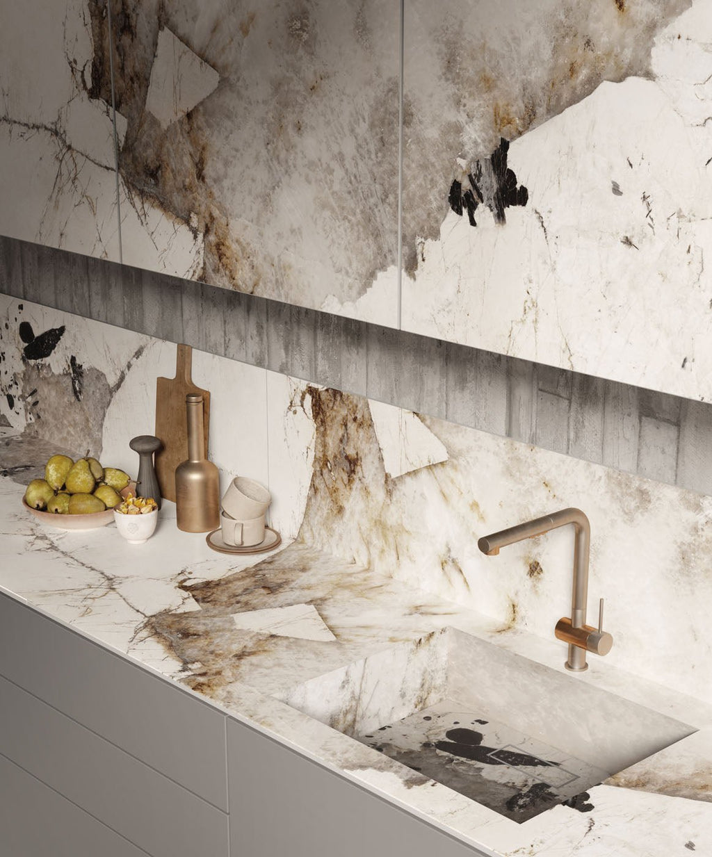 Experience luxury with Magellano, a premium porcelain slab from Infinity Surfaces. Inspired by Brazilian Patagonia granite, its creamy beige base is adorned with bold brown blocks and hints of rusty orange and black, bringing warmth and sophistication to any space.