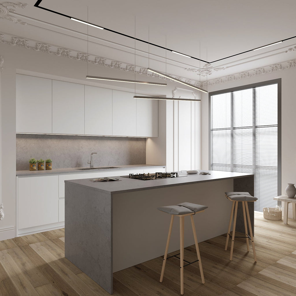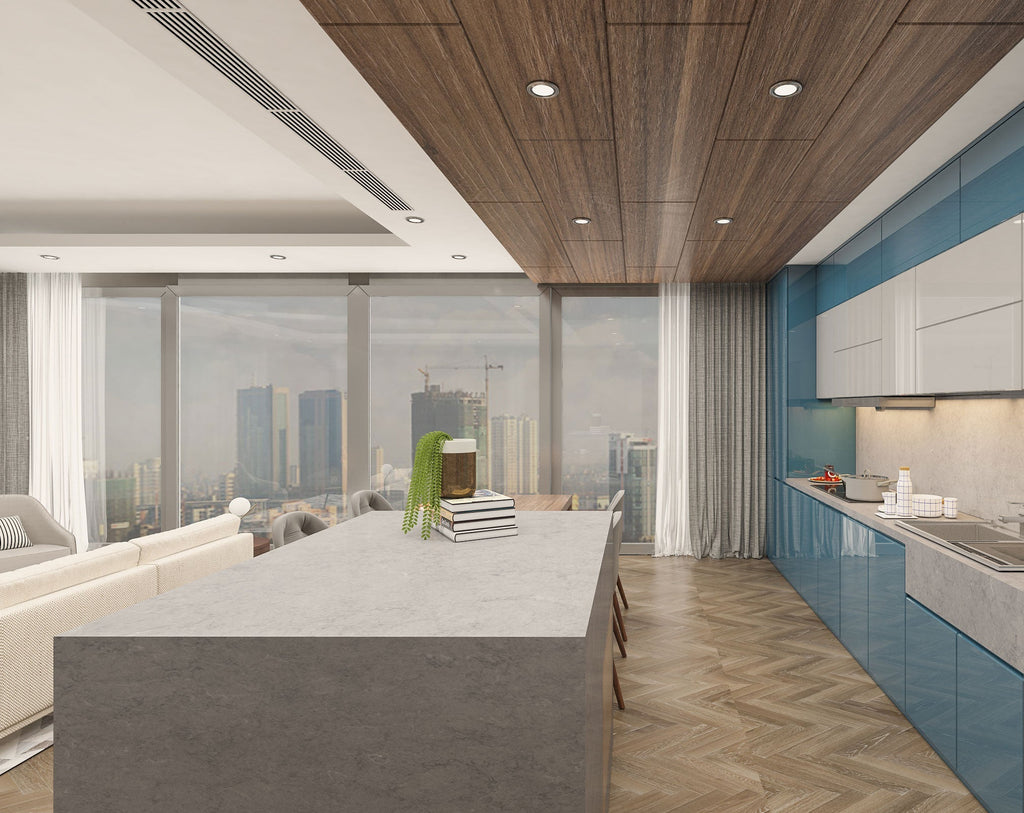 Capture the essence of stylish tranquility with Vicotone Monterosa, a gray-marble-look quartz featuring delicate veining that adds a touch of elegance to any interior space.