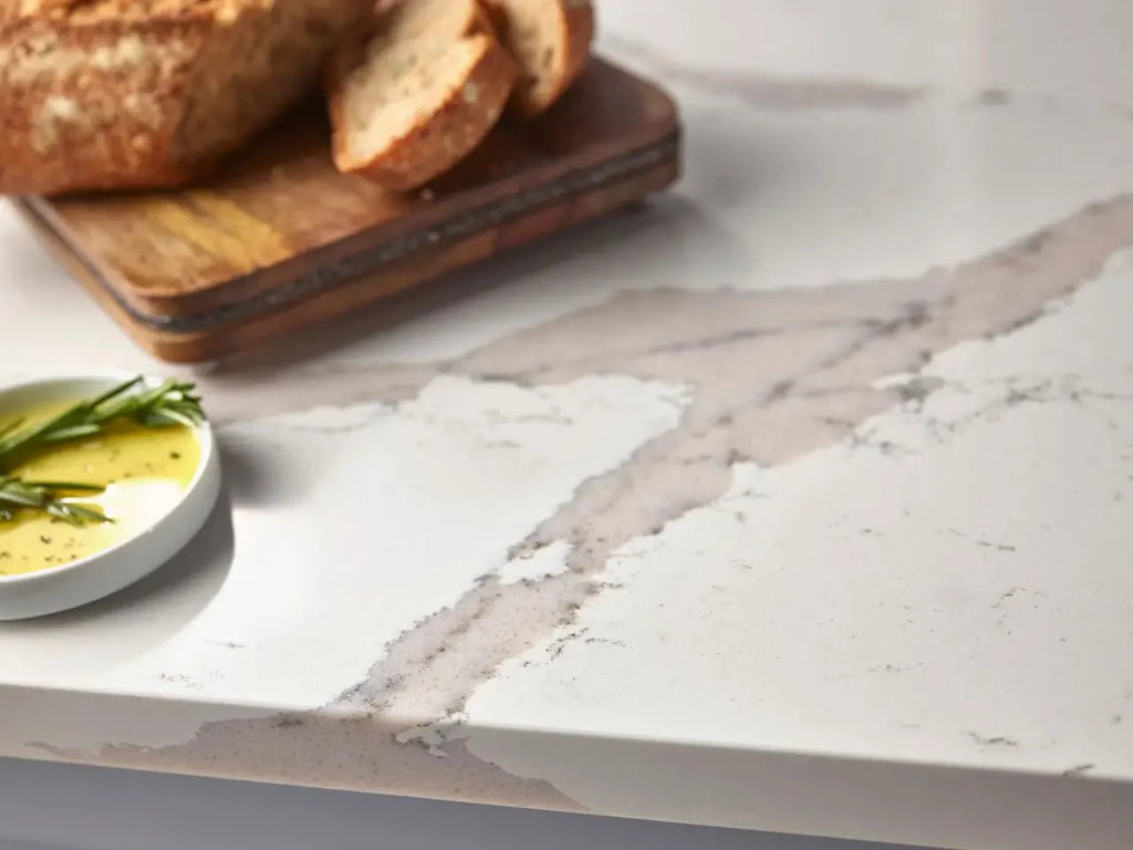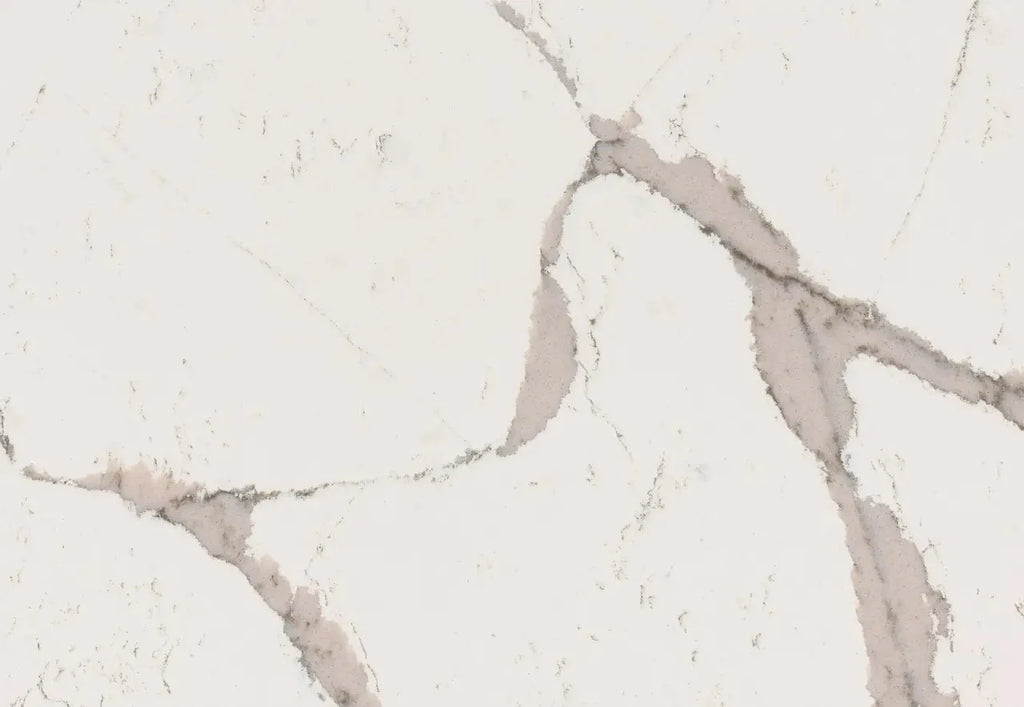 Transform your space into a luxurious haven with Nadenbrook Cambria. Flowing bold streaks of sandy khaki, taupes, and grays dance across a crisp white canvas, accented by veins of striking black and scattered neutral dots. Experience the epitome of elegance and style with this stunning and sophisticated addition.
