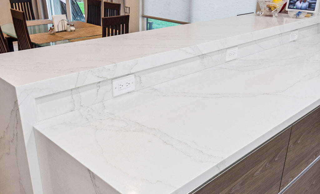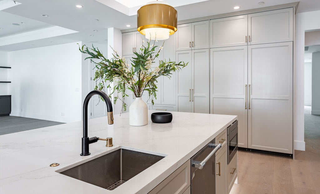 Calacatta marble-inspired quartz, featuring a white background with dynamic light grey and gold veining. We set out to recreate the depth of shade and radiant light in Phoenix Sky’s subtle veins of grey and gold, set against a luminous white backdrop. A translucent base and organic pattern of flowing veins adds dimension, a nod to Yosemite’s cloud steeped peaks and deep sweeping valleys; mimicking the random aesthetic of nature’s patterns.