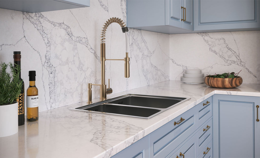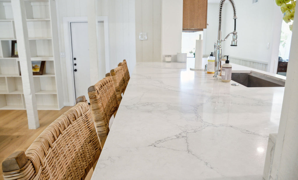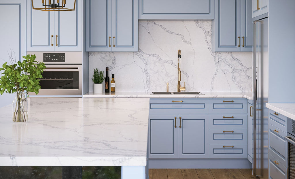 Superwhite quartzite-inspired quartz, featuring a two-toned off-white and grey background with flowing grey veining. Inspired by the undulating terrain of Goreme National Park, Turkey — dramatic threads cascade across a cloudy white-gray base, a play of shadows as the setting sun casts grooves and valleys, shifting with the movement of clouds. Once a year a flurry of hot air balloons float across the rocky cascades, bright colors and light dancing on the horizon. We pay homage to this scene in Sky Dancer’s flowing veins – a design that marries harmoniously with colorful tones.