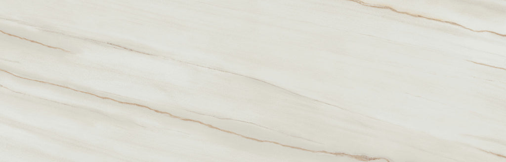 The Sleet Caesarstone countertop boasts an ethereal blend of off-white and grey veins, complemented by prominent slanted patterns. Golden-brown streaks add a touch of luxury, creating a minimal yet elegant design that is layered with sophistication.