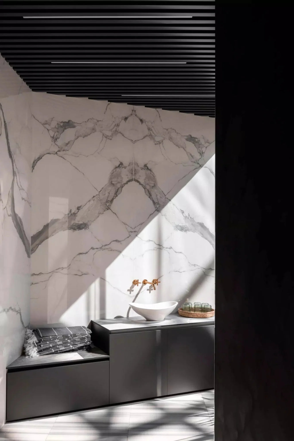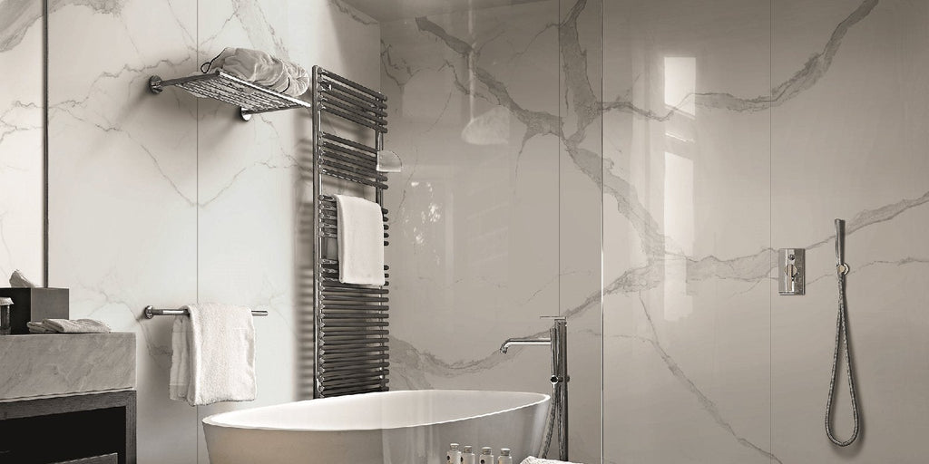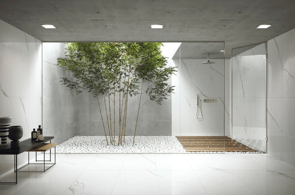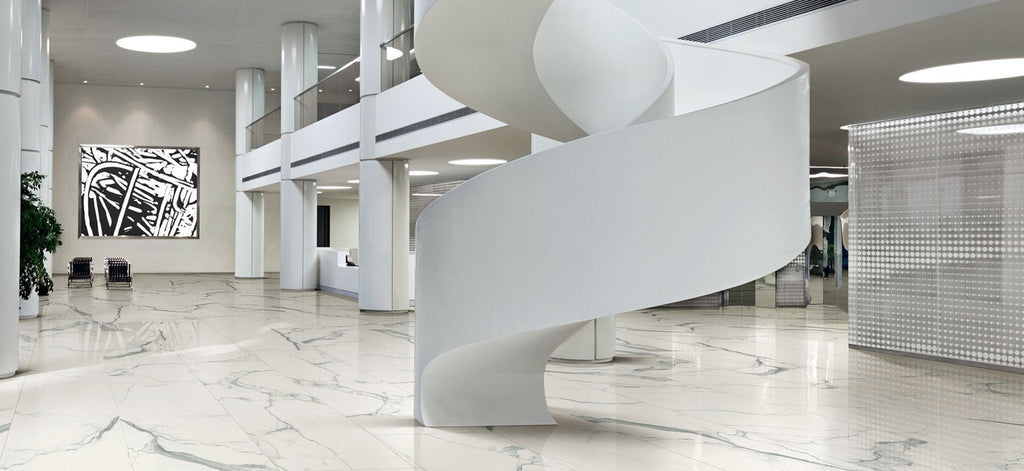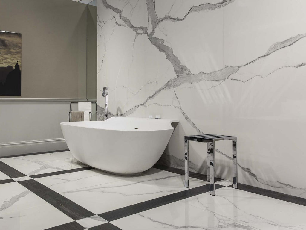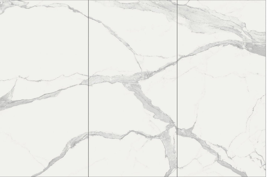Experience the striking veining designs of Florim Magnum Statuario Classico marble, with bold, pronounced veins that flow through the stone in sweeping curves and intricate patterns, creating a dynamic and alluring effect. These veins vary in shades of muted grey to rich grey or even hints of gold, adding dimension and captivating charm to the marble's pristine white surface.