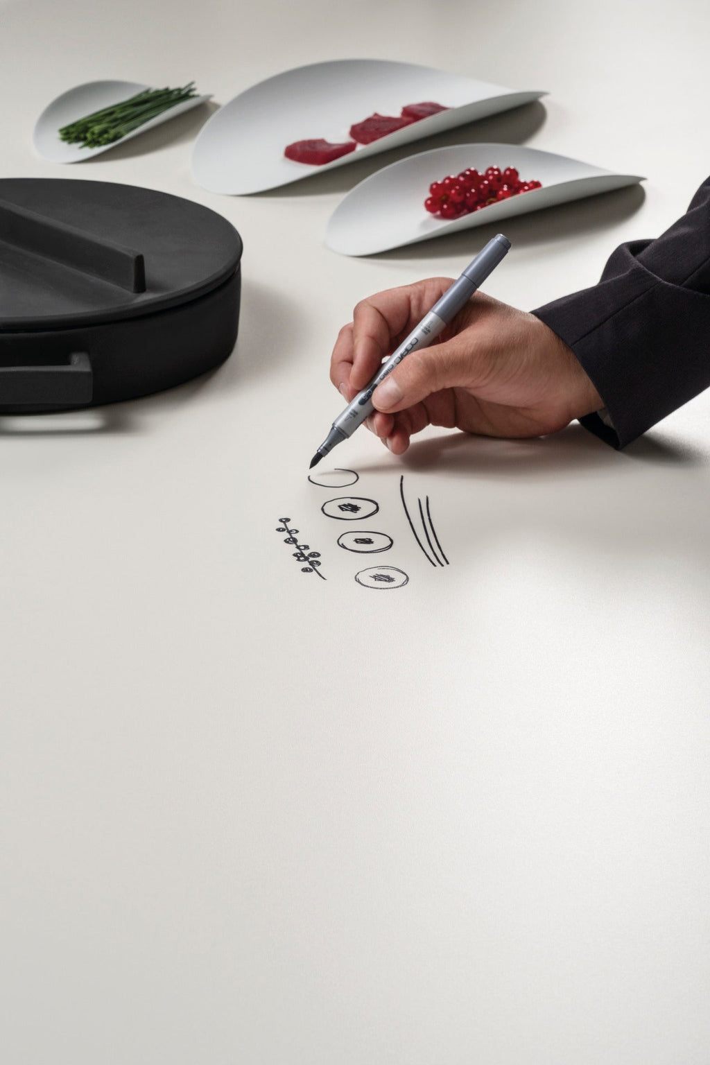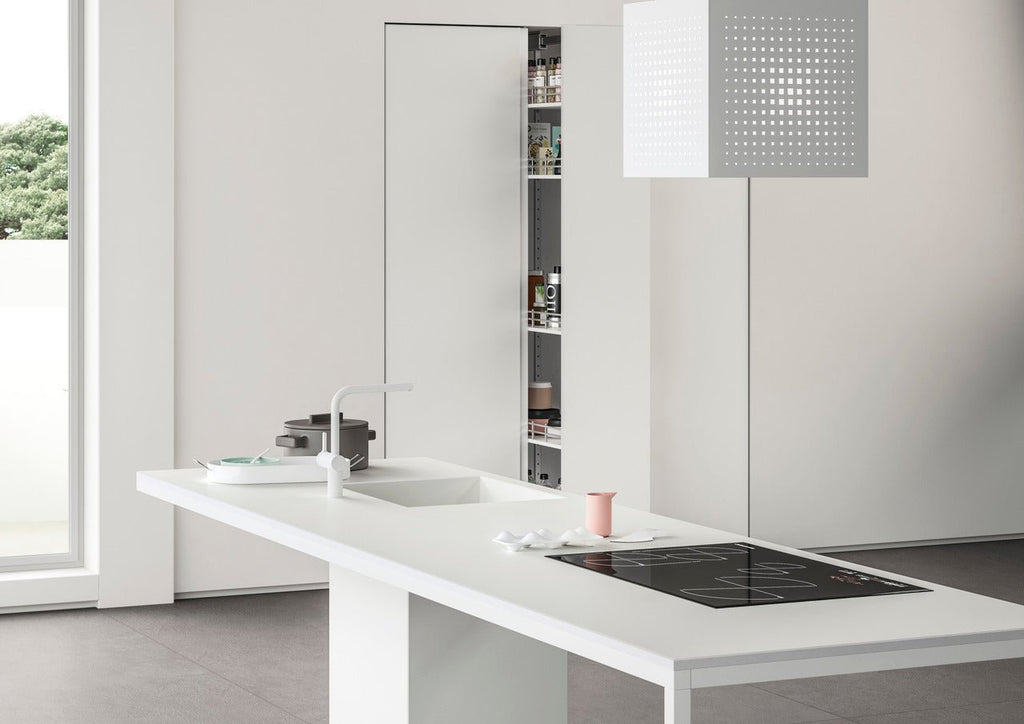 Uni Ice's ultra-white hue adds a touch of simplicity and light to the kitchen countertop. Available in natural and polished finishes.