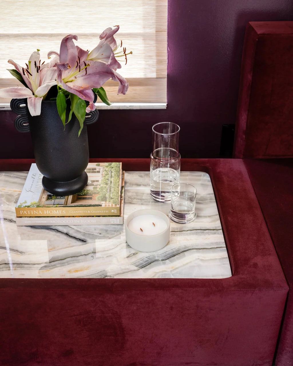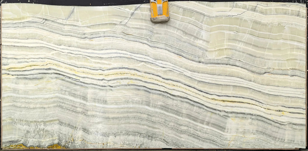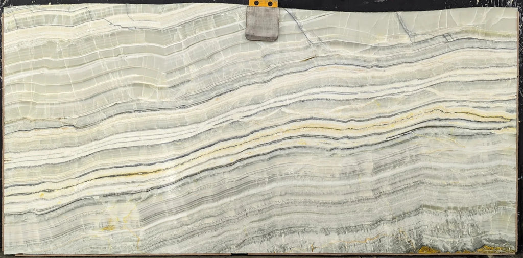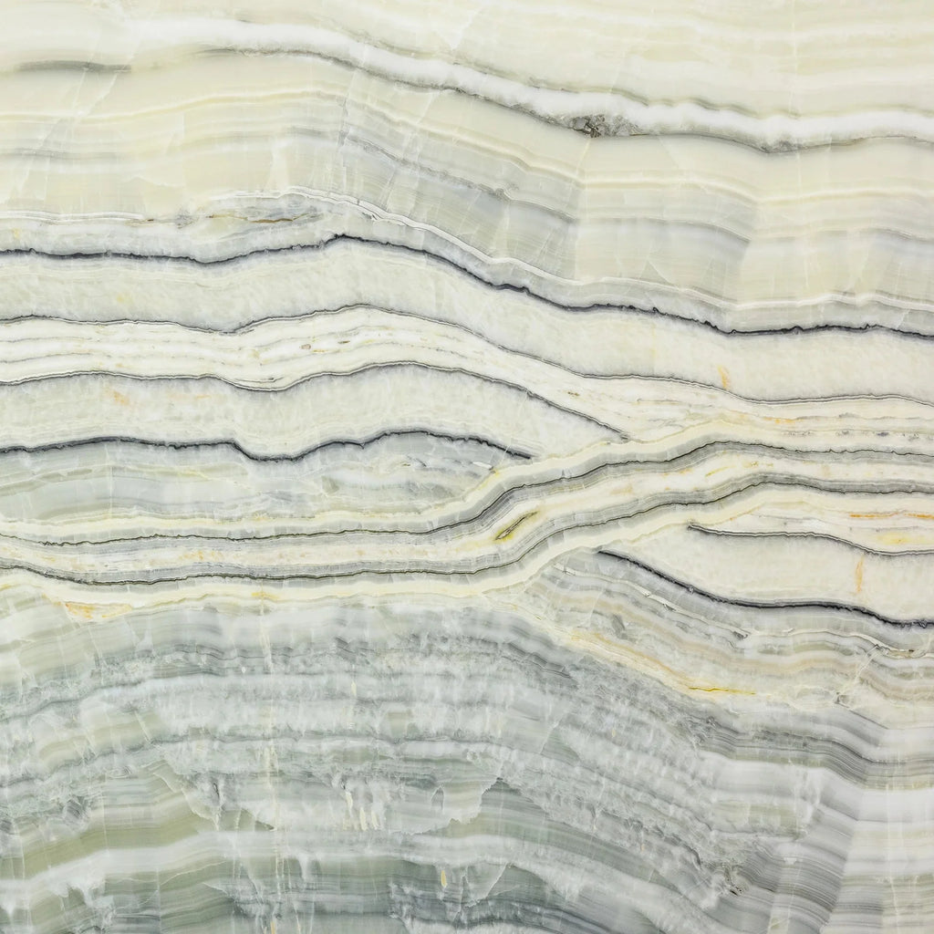 Experience the essence of luxurious silk velvet with Velluto Onyx, featuring a meandering, rippling pattern of veins in shades of alabaster, ivory, platinum, absinthe, and hints of midnight purple, saffron, and honey.