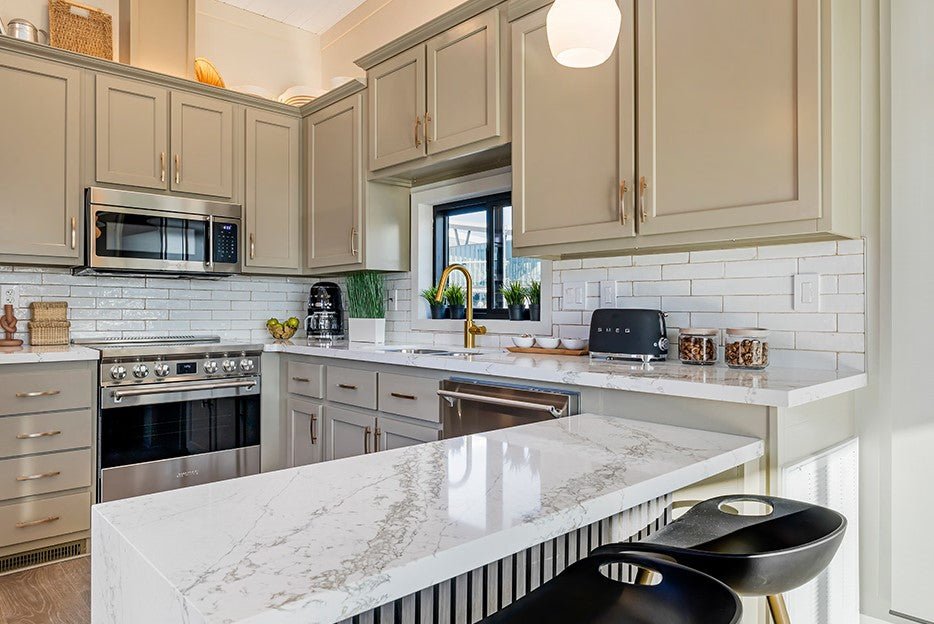 Get ready to be enchanted by Wilsonart Verde Peak. Its lightly veined white background is playfully accented with green-grey lines that can range from petite to bold. You may even spot some small pockets of soft grey along the larger veins. This slab is full of surprises, with subtle variations in tone and value throughout.