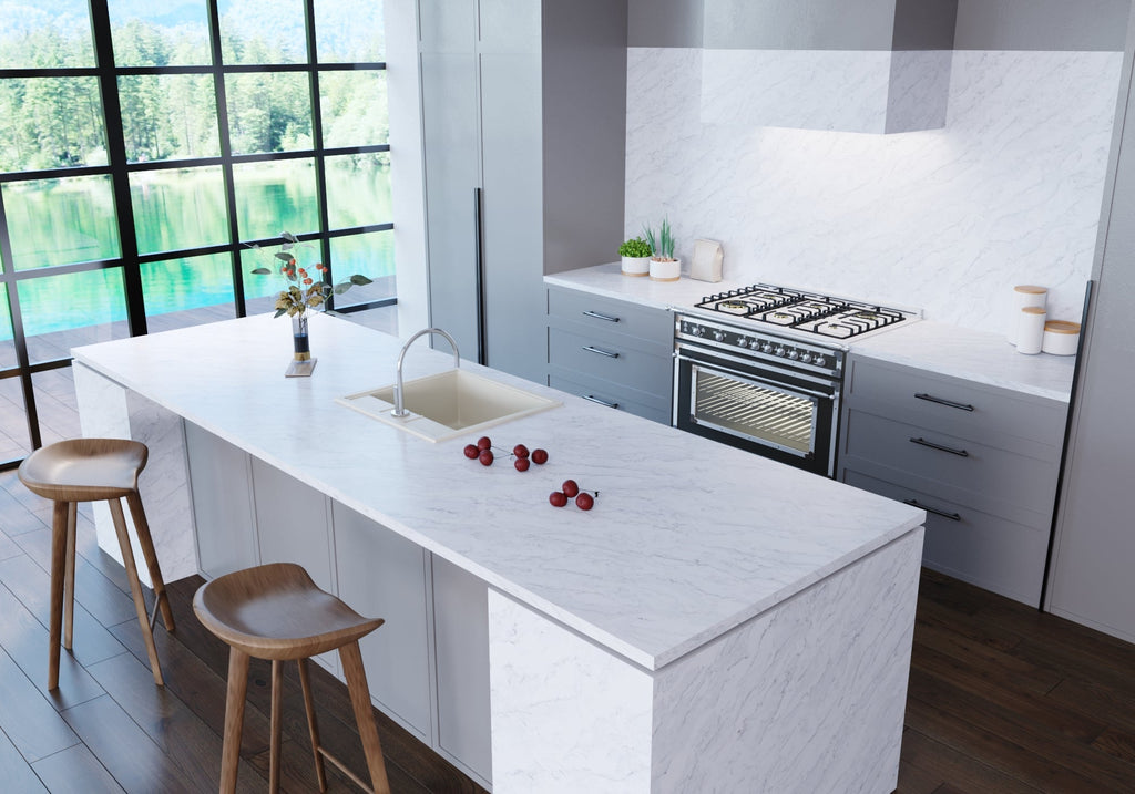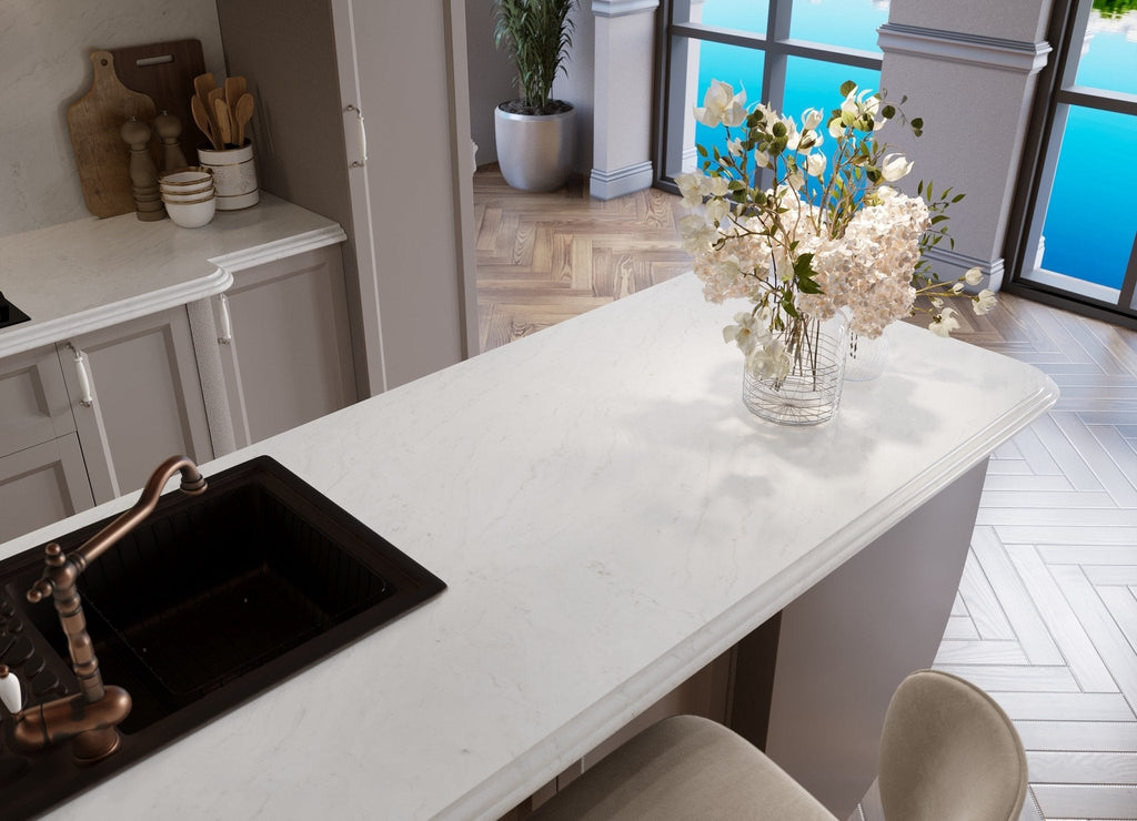 Introducing Volakano Vicostone - a refreshing twist on natural Volakas. With unique vein patterns that exude warmth and freedom, get ready to let the good times "quartz" (quartz = quartz = roll) with this one-of-a-kind gemstone.