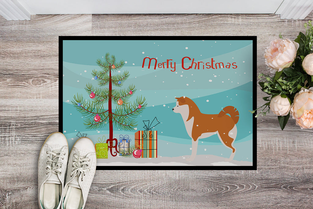 Decorate your space with our Christmas Akita artwork on a Doormat. Welcome your guests in style with our Artwork Door Mat, designed to withstand almost any weather condition. This mat, measuring approximately 24 by 36 inches, is held together by durable black binding tape. Its top layer, composed of polyester felt, is dyed with the eye-catching image you see on the mat. A few layers below provide the mat with stability, while its rubber bottom is stamped to help prevent slipping and ensures safety. Our mat works wonderfully as both an indoor or outdoor door mat. For cleaning, simply hose it off with water or use a power washer - no need for any cleaner that produces suds. Avoid scrubbing with a brush, instead, opt for the vacuum on floor setting. Designed manufactured and printed in the USA, this mat is a perfect addition to your porch, outdoor kitchen, entryway, or any indoor space. Its unique design makes it a charming decorative rug that greets your guests and adds a stylish touch to your home decor.