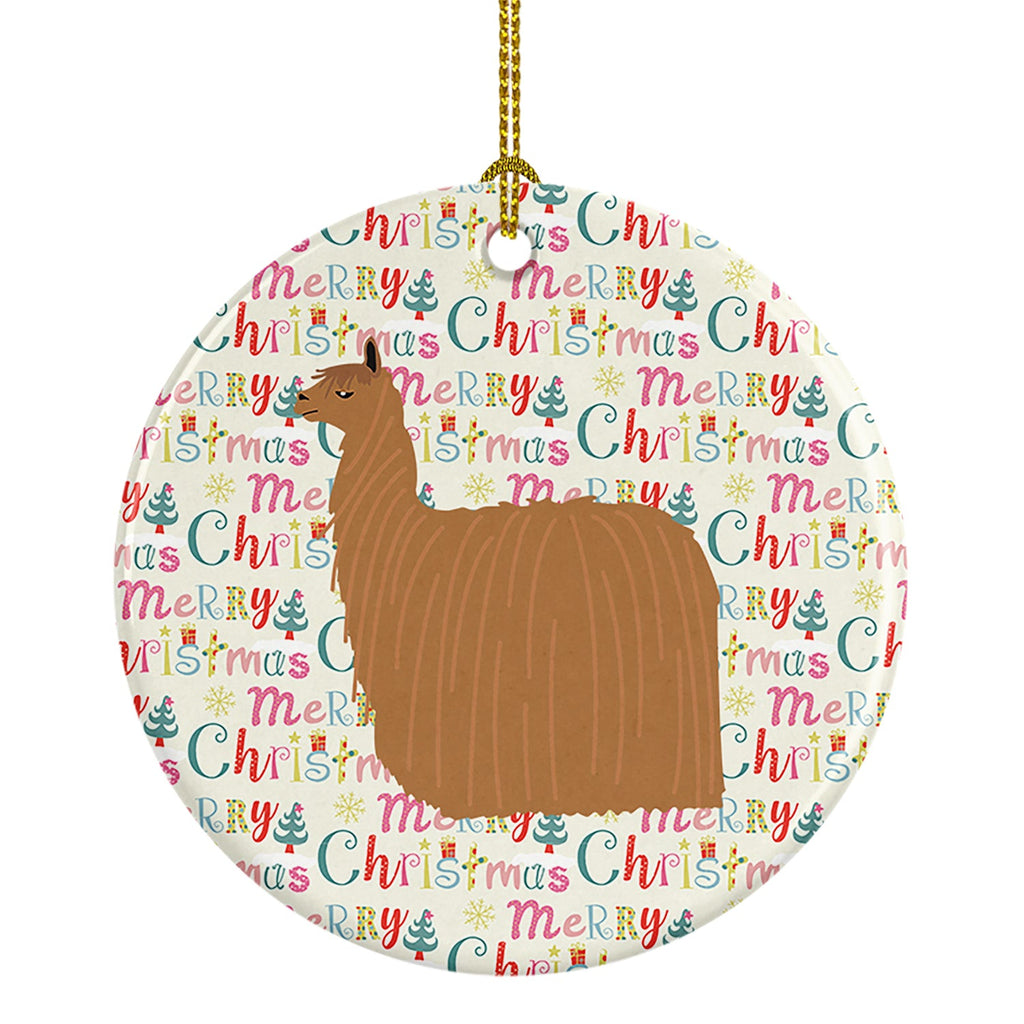 Decorate your space with our Christmas Alpaca Suri artwork on a Ornament. Add a touch of personalized charm to your Christmas tree this holiday season with our Ceramic Ornament. Measuring 2.8125 inches in diameter, this round porcelain ornament beautifully reflects your festive lights, enhancing your holiday decor. The gloss surface sets off the vibrant, full-color artwork contributed by one of our talented artists, bringing a pop of color and joy to your tree. This Ceramic Ornament doesn't stop at being merely decorative. The white back is designed for personalization. Write a heartfelt message, mark a special year, or inscribe a date with a paint pen or a permanent marker to create a treasured memento. Please ensure you allow any personalization to dry thoroughly before handling to maintain the pristine finish. Included with the ornament is a delicate gold cord for easy hanging. Made in the USA, this Ceramic Ornament makes an exceptional gift for a pet sitter, teacher, family member, or anyone you wish to share a little Christmas magic with. With its blend of style, charm, and personal touch, it's a meaningful addition to any Christmas tree.