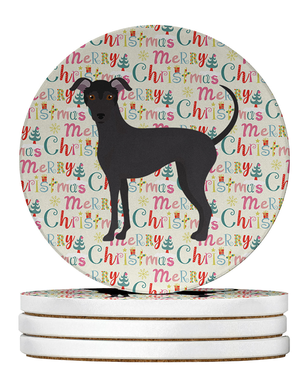 Argentine Pila Dog Merry Christmas Large Sandstone Coasters Pack of 4