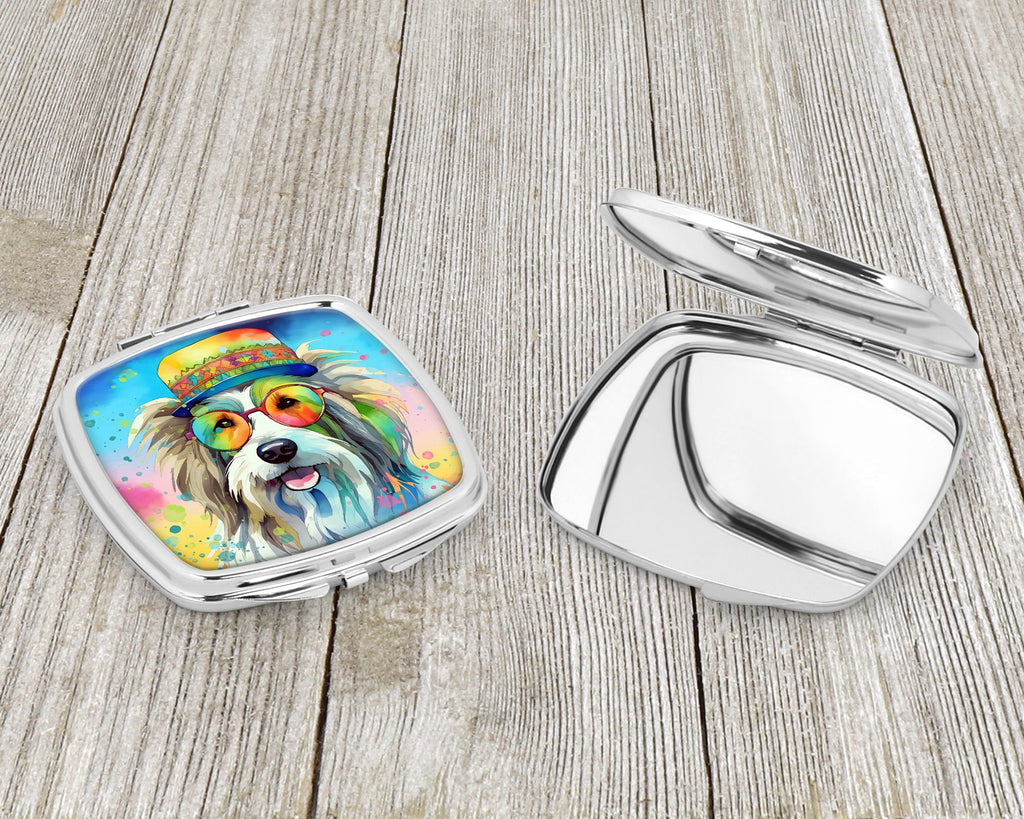 Decorate your space with our Bearded Collie artwork on a Compact Mirror. Bring a bit of Summer into your home with a Summer Compact Mirror. Introducing our Square Compact Mirror, a blend of elegance, functionality, and compactness, perfect for on-the-go touch-ups. This Silvertone metal mirror, with dimensions of 2.75 inches x 3 inches x .3 inches, fits effortlessly into your purse, handbag, or pocket, ensuring that you can check your appearance anytime, anywhere. Our compact mirror stands out with its eye-catching artwork on the front, adding a dash of style to this practical accessory. It is more than just a mirror; it's a statement piece that reflects your personality and aesthetic. When opened, this compact reveals two mirrors inside, doubling your perspective for precise touch-ups. The Silvertone metal construction ensures durability while maintaining a lightweight feel, making it an ideal everyday carry item. Whether you're rushing to a meeting, prepping for a dinner date, or just need a quick check on your look, our Square Compact Mirror is your reliable companion. Experience the perfect blend of style and practicality with this must-have accessory.