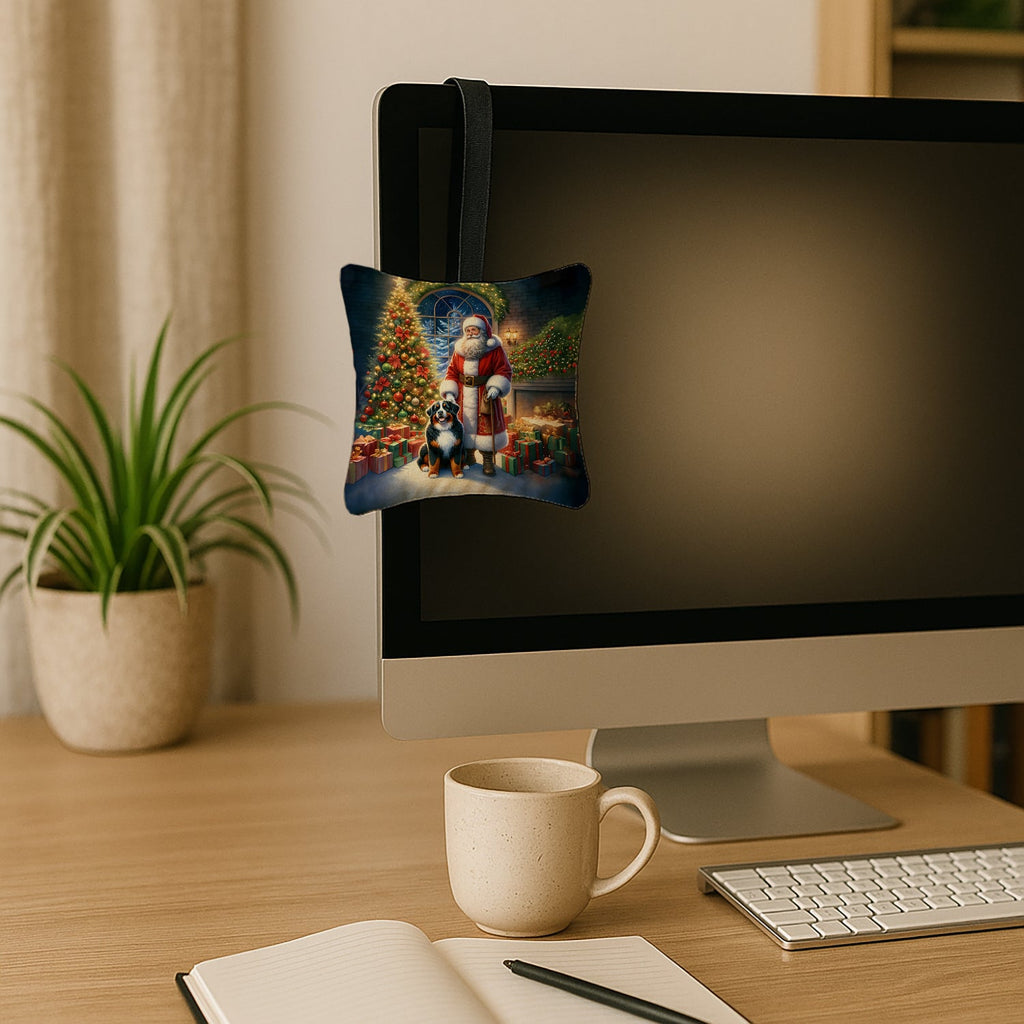 Bernese Mountain Dog and Santa Claus Hanging Square Fabric Ornament 3.5 × 3.5