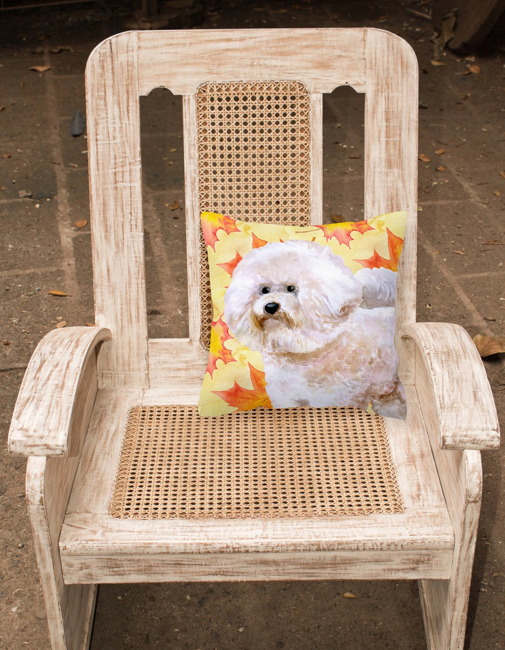 Decorate your space with our Bichon Frise artwork on a Pillow. Revitalize your outdoor or indoor living space with Caroline's Treasures 18x18 Fabric Decorative Pillow. With a generously sized dimension of approximately 18 inches by 18 inches, this pillow makes a comfortable and aesthetic addition to any seating area. Made from a unique, water-resistant material developed by Caroline's Treasures, the pillow sham is 100% polyester fabric that's durable and ready to weather any condition. Its vibrant, full-color artwork will not fade over time as it is dyed with color-fast dyes. Whether you place it on your patio furniture, porch, veranda, or indoor couch, its soft canvas fabric ensures a cozy experience. The pillow is handcrafted in the United States, featuring a sham created from three pieces of fabric and a polyester insert for enduring shape and overstuffed comfort. Despite being robustly built to endure the outdoors, it is as soft and snug as your favorite indoor cushions. Please note, as all our pillows are handmade, sizes may vary slightly, adding to the charm of this unique decorative item.