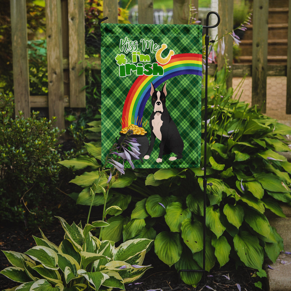 Black Boxer St. Patrick's Garden Flag – "Kiss Me I’m Irish" with Pot of Gold & Rainbow
