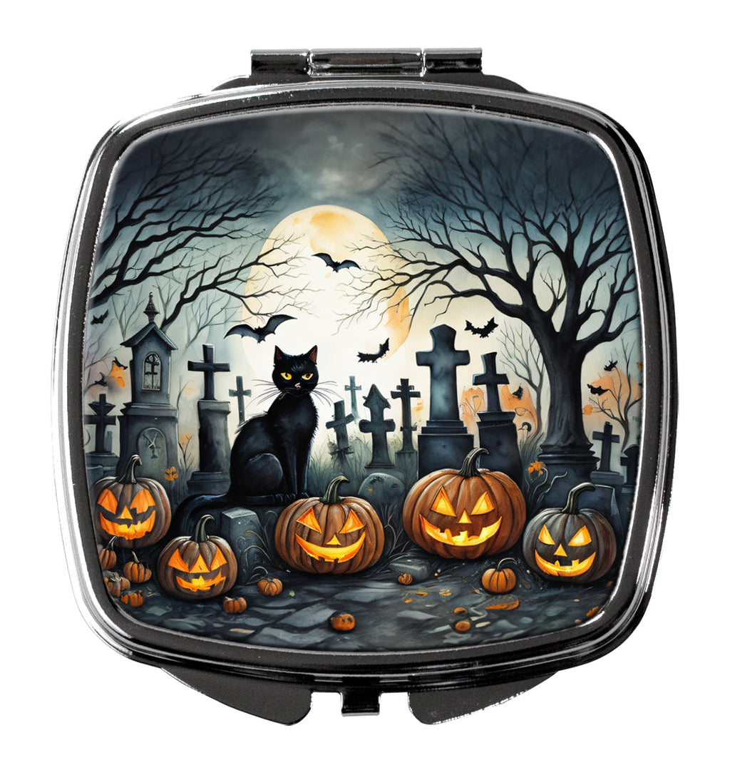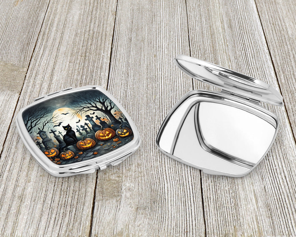 Black Cat Spooky Halloween Compact Mirror – Stylish Purse Mirror with Artistic Covers