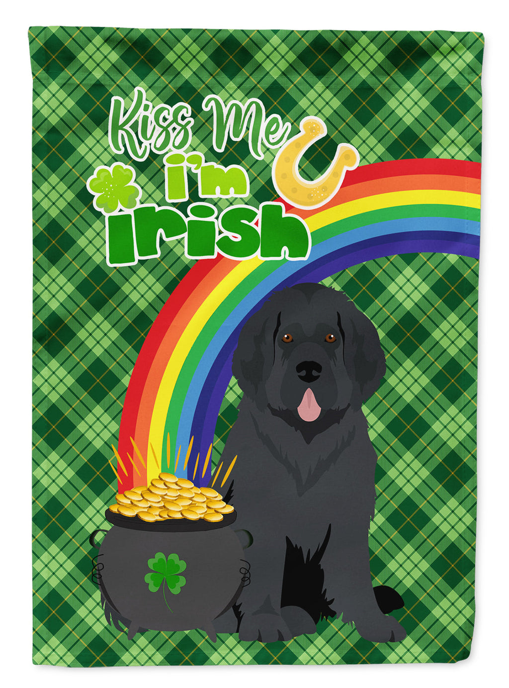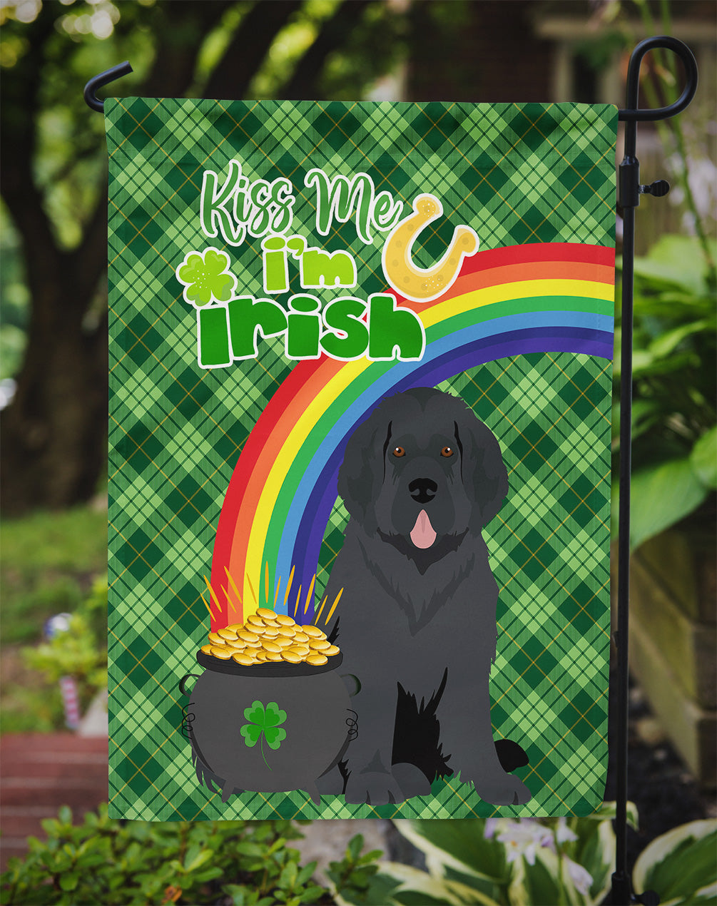 Black Newfoundland St. Patrick's Garden Flag – "Kiss Me I’m Irish" with Pot of Gold & Rainbow