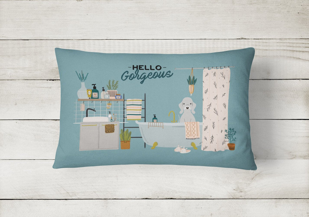 Decorate your space with our Bedlington Terrier artwork on a Pillow. Embrace the fusion of comfort and style with Caroline's Treasures Fabric Decorative Pillow. This 12x16 inch outdoor pillow is designed to complement your patio furniture, adding a splash of color and artistry to your outdoor setting. Constructed with a 100% Polyester Fabric pillow sham filled with a plush pillow form, this cushion is as comfortable as it is durable. Our outdoor pillow utilizes a novel fabric, meticulously woven for enhanced water resistance. This soft canvas material is equally suited for your indoor couch as well as outdoor settings such as the patio, porch, or veranda. To ensure enduring vibrance, we employ colorfast dyes resistant to fading even when subjected to weather elements. The making of this pillow involves the delicate sewing together of three fabric pieces to create a sham, into which a polyester insert is carefully placed. The result is an overstuffed pillow that tenaciously holds its shape. With both the sham and the pillow insert crafted in the United States, these handmade pillows are a testament to superior local craftsmanship. Note that as these pillows are handmade, sizes may slightly vary, enhancing their unique appeal. Enjoy comfort in style with Caroline's Treasures Fabric Decorative Pillow.