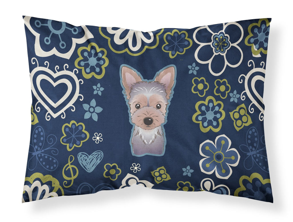 Blue Flowers Yorkie Puppy Fabric Standard Pillowcase – Artistic Decorative Front, White Back BB5083PILLOWCASE