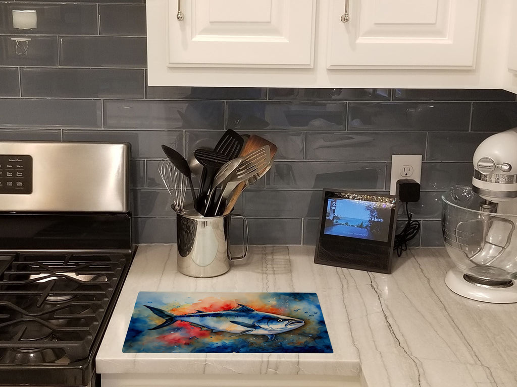 Decorate your space with our Bluefin Tuna artwork on a Cutting Board. Introduce your kitchen to the vibrant, large Decorative Glass Cutting Board from Caroline's Treasures. Crafted from resilient tempered glass, this board is not only a utilitarian necessity but also a colorful art piece. With its generous dimensions of 15 inches in height and 12 inches in length, it offers ample space for all your cutting needs. Every piece showcases captivating artwork from distinguished artists, bringing an aesthetic edge to your kitchen. Beyond its attractive design, this cutting board ensures your countertop stays pristine and unscathed, owing to its heat-resistant properties. Engineered with user convenience in mind, it features non-skid feet for stability, and rounded corners for additional safety. Its robust construction renders it virtually unbreakable, guaranteeing longevity. The board comes with protective feet bumpers, maintaining its position during use. This product is recommended to be hand washed only. Proudly printed and assembled in the United States, this cutting board exemplifies superior craftsmanship. With Caroline's Treasures' Decorative Glass Cutting Board, you're investing in a blend of functionality and artistic flair.