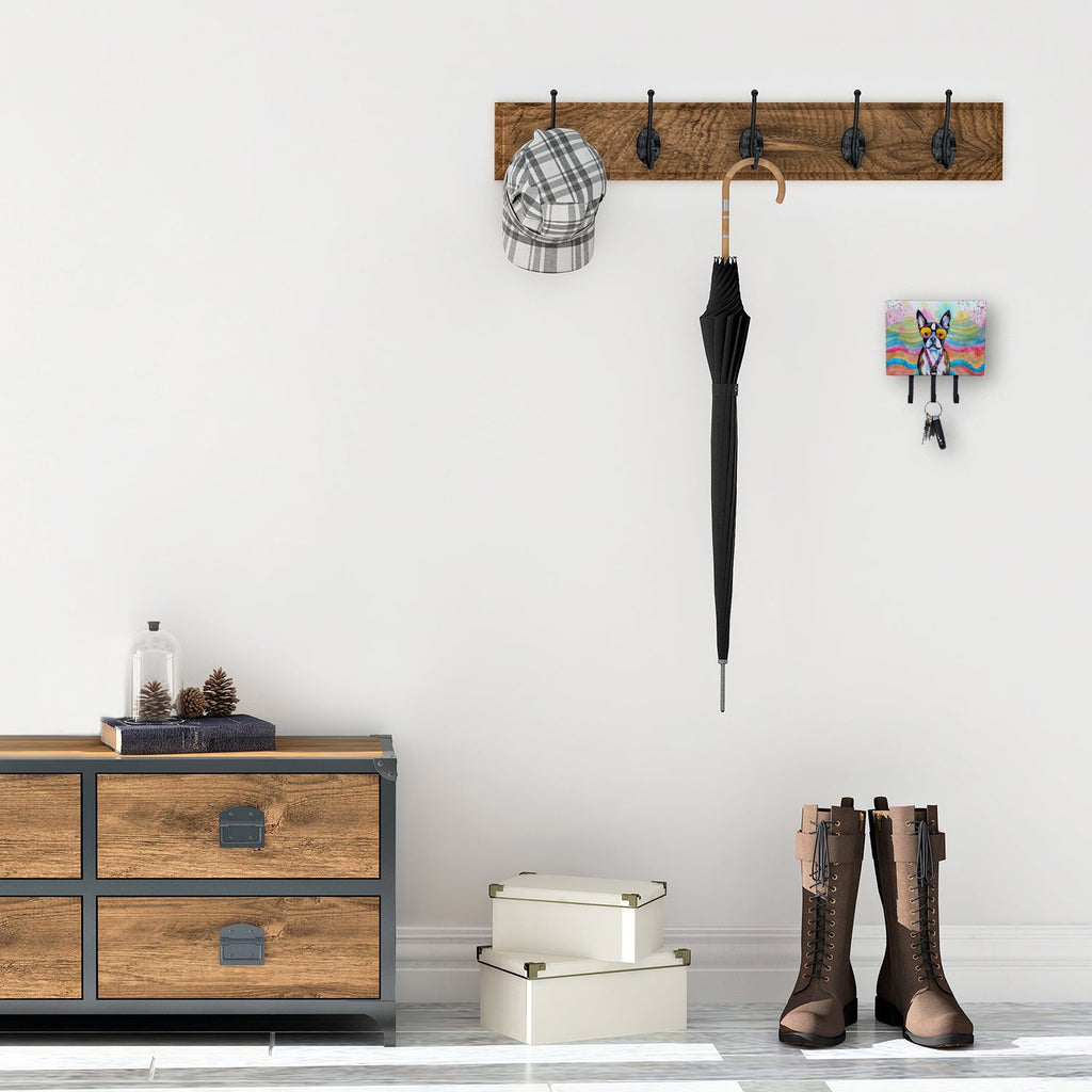 Decorate your space with our Boston Terrier artwork on a Wall Hook. Bring a bit of Summer into your home with a Summer Wall Hook. Transform your home or office's organization with the Caroline's Treasures Triple Leash or Key Holder. Offering versatility and style, this triple hook holder is perfect for holding keys, leashes, or just about any other small items you need to keep at hand. Crafted with a hardboard tile mounted to a metal rectangle, this holder's structure speaks of durability and reliability. Each hook hangs down about 2.5 inches from the base, providing ample space for hanging your essentials. Despite its robustness, this triple hook holder remains simple to install. It comes with a 1.5-inch long hanger attached to the metal plate, ensuring easy installation with a screw or paneling nail. This holder, measuring 6 x 2 x 9 inches and weighing only 1 lb, is a compact and lightweight solution to your storage needs. Ideal for home or office use, the Caroline's Treasures Triple Leash or Key Holder enhances organization while adding a touch of sophistication to your space.