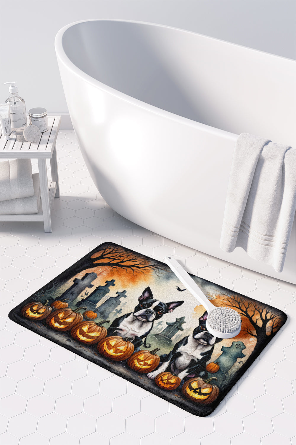 Boston Terrier Spooky Halloween Memory Foam Kitchen Mat
