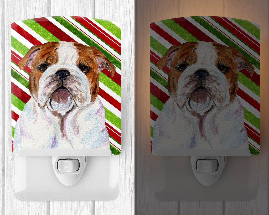 Decorate your space with our Christmas Bulldog, English Bulldog artwork on a Night Light. Introduce a splash of artistic flair and subtle illumination to your space with the Decorative Ceramic Night Light from Caroline's Treasures. Perfect for any room, this night light seamlessly blends functionality with an aesthetic appeal, offering a stylish solution to brighten up dark corners of your home or office. Boasting a six-inch high by four-inch wide ceramic tile at the front, it showcases vivid, full-color artwork from distinguished artists, transforming a simple utility into a vibrant art piece. The artwork is securely encased in a robust metal holder, ensuring durability and longevity. Two screws are provided to firmly affix the tile into the holder. The holder extends three inches deep, housing an included bulb that emits a soft, welcoming glow. This product meets all safety standards, as evidenced by its UL approval. Proudly made in the United States from imported components, this Decorative Ceramic Night Light is not just a functional device; it's a statement piece that enhances the ambiance of your surroundings.