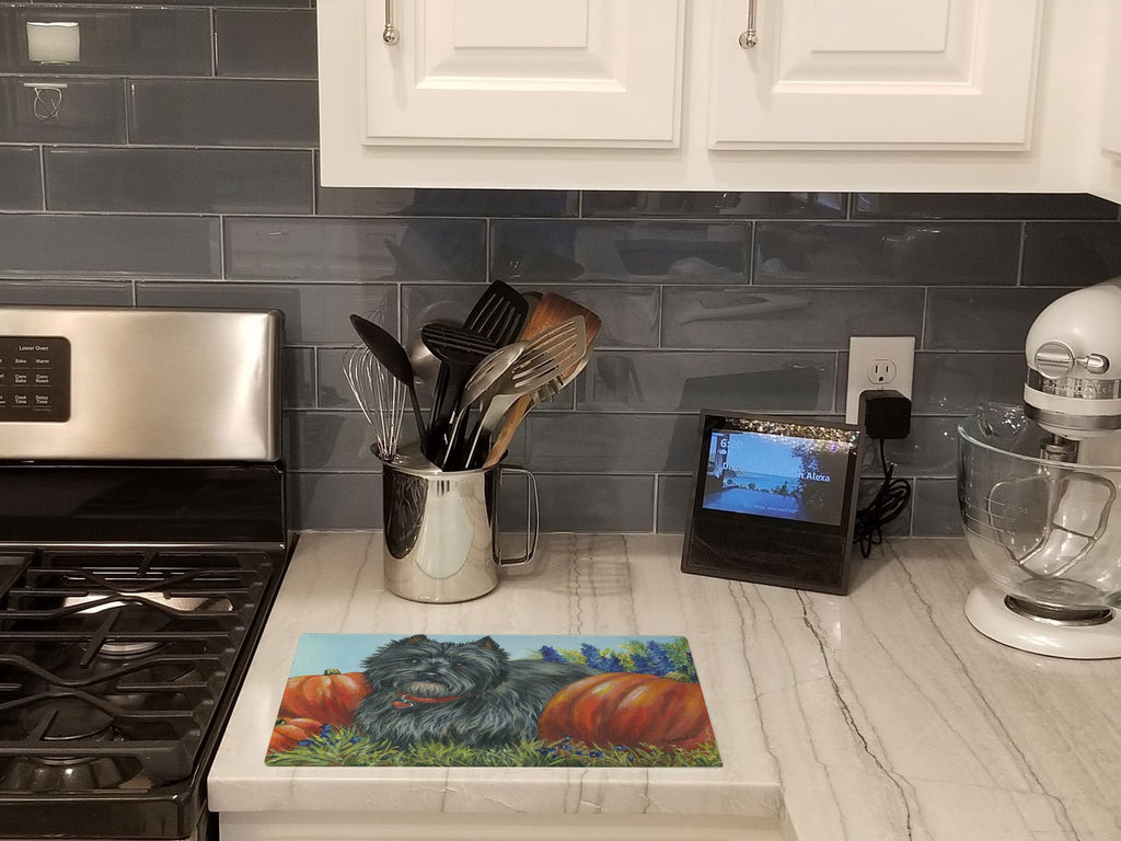 Decorate your space with our Cairn Terrier artwork on a Cutting Board. Bring a bit of Fall into your home with a Fall Cutting Board. Introduce your kitchen to the vibrant, large Decorative Glass Cutting Board from Caroline's Treasures. Crafted from resilient tempered glass, this board is not only a utilitarian necessity but also a colorful art piece. With its generous dimensions of 15 inches in height and 12 inches in length, it offers ample space for all your cutting needs. Every piece showcases captivating artwork from distinguished artists, bringing an aesthetic edge to your kitchen. Beyond its attractive design, this cutting board ensures your countertop stays pristine and unscathed, owing to its heat-resistant properties. Engineered with user convenience in mind, it features non-skid feet for stability, and rounded corners for additional safety. Its robust construction renders it virtually unbreakable, guaranteeing longevity. The board comes with protective feet bumpers, maintaining its position during use. This product is recommended to be hand washed only. Proudly printed and assembled in the United States, this cutting board exemplifies superior craftsmanship. With Caroline's Treasures' Decorative Glass Cutting Board, you're investing in a blend of functionality and artistic flair.