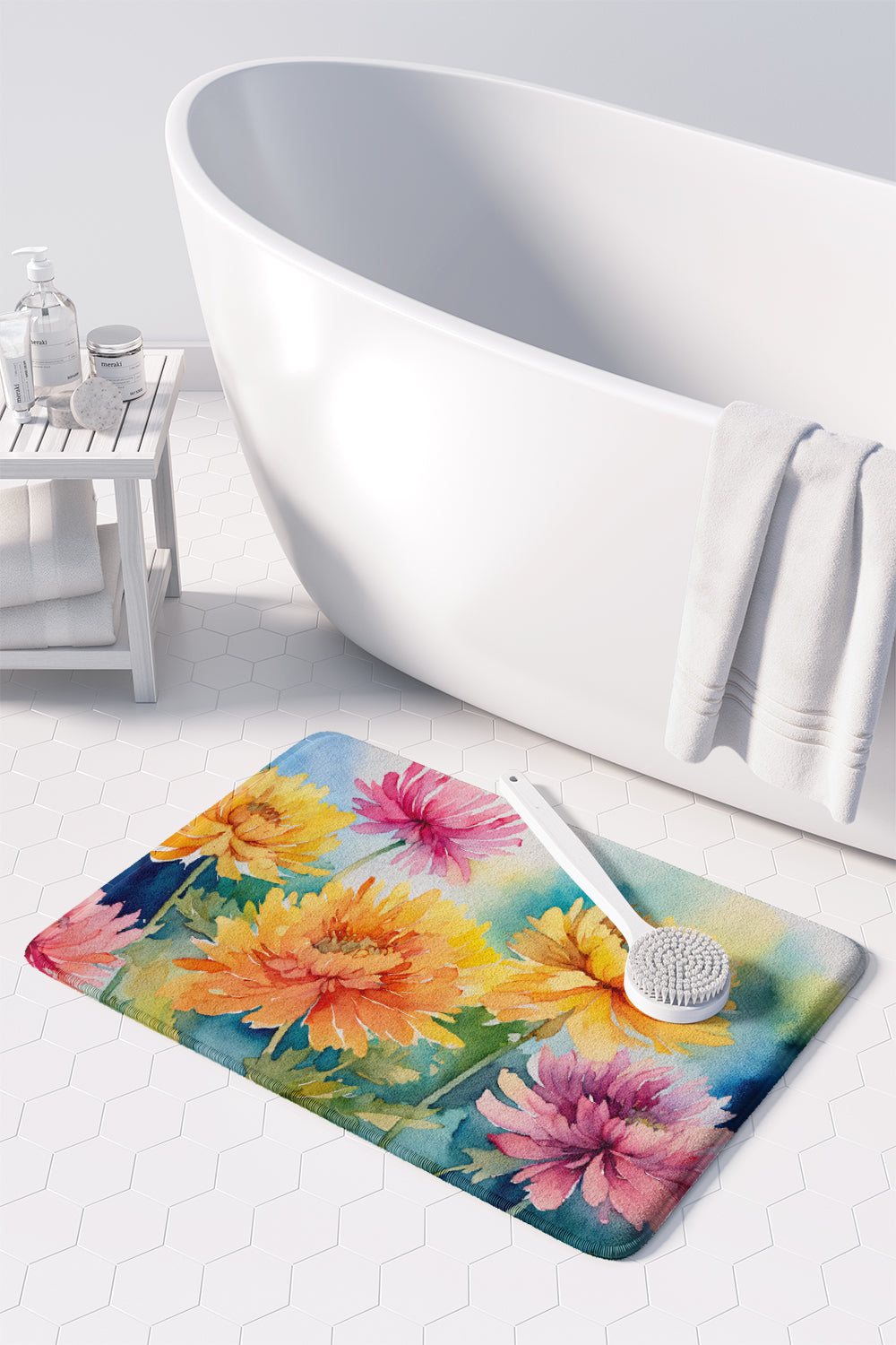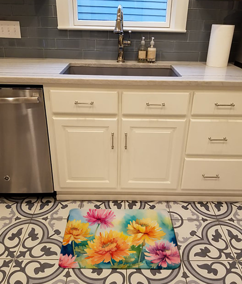 Decorate your space with our Chrysanthemums artwork on a Floor Mat. Transform your floor into a work of art with Caroline's Treasures' Memory Foam Mat. This mat offers not only a stunning visual appeal but also a luxurious, plush feel that's incredibly comfortable to the touch. It's a versatile, machine-washable mat designed for both bath and kitchen use, ensuring you experience the best in comfort and convenience. Care Instructions: Maintaining this memory foam mat is a breeze. Simply follow the care instructions on the product tag. It's recommended to wash in cold water and dry on a low-temperature setting in the dryer. This ensures the mat retains its quality and longevity, allowing you to enjoy its beauty and comfort for a long time. Caroline's Treasures' Memory Foam Mat Machine Washable is the perfect blend of artistry, comfort, and practicality, making it a standout addition to any space. Upgrade your home decor with this versatile and stylish mat today.