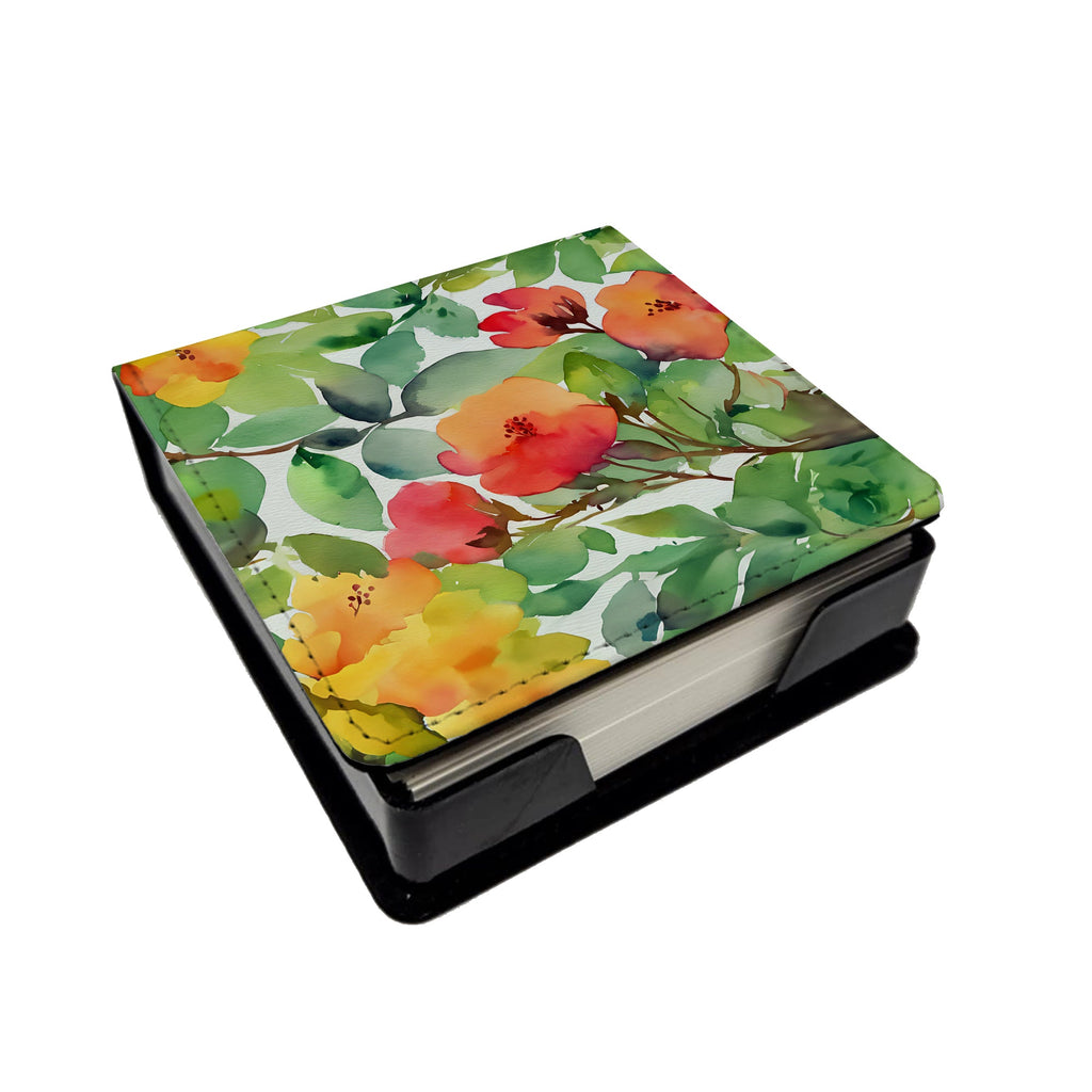 PU Leather Note Paper Holder featuring breed specific Connecticut Mountain Laurels artwork. Elevate your workspace with this PU Leather Note Paper Holder, crafted to resemble luxurious leather without the use of animal products. Made from durable synthetic PU leather, it offers both a premium look and eco-friendly appeal. This note holder, compactly sized at 4.25 x 4.25 x 1.25 inches, includes about 160 sheets of 3.75 x 3.75-inch note paper—ideal for quick notes and reminders. An exclusive artist-designed cover makes each holder uniquely vibrant, adding a splash of color and personality to any desk or office. The discrete design keeps note paper hidden, maintaining a neat and organized workspace. Perfect as a gift or for personal use, this stylish holder is refillable with standard paper, ensuring long-lasting utility. A must-have for anyone seeking a sophisticated, artful touch to their workspace while supporting animal-friendly products. Add style, organization, and creativity to your everyday routine with this elegant note paper holder.