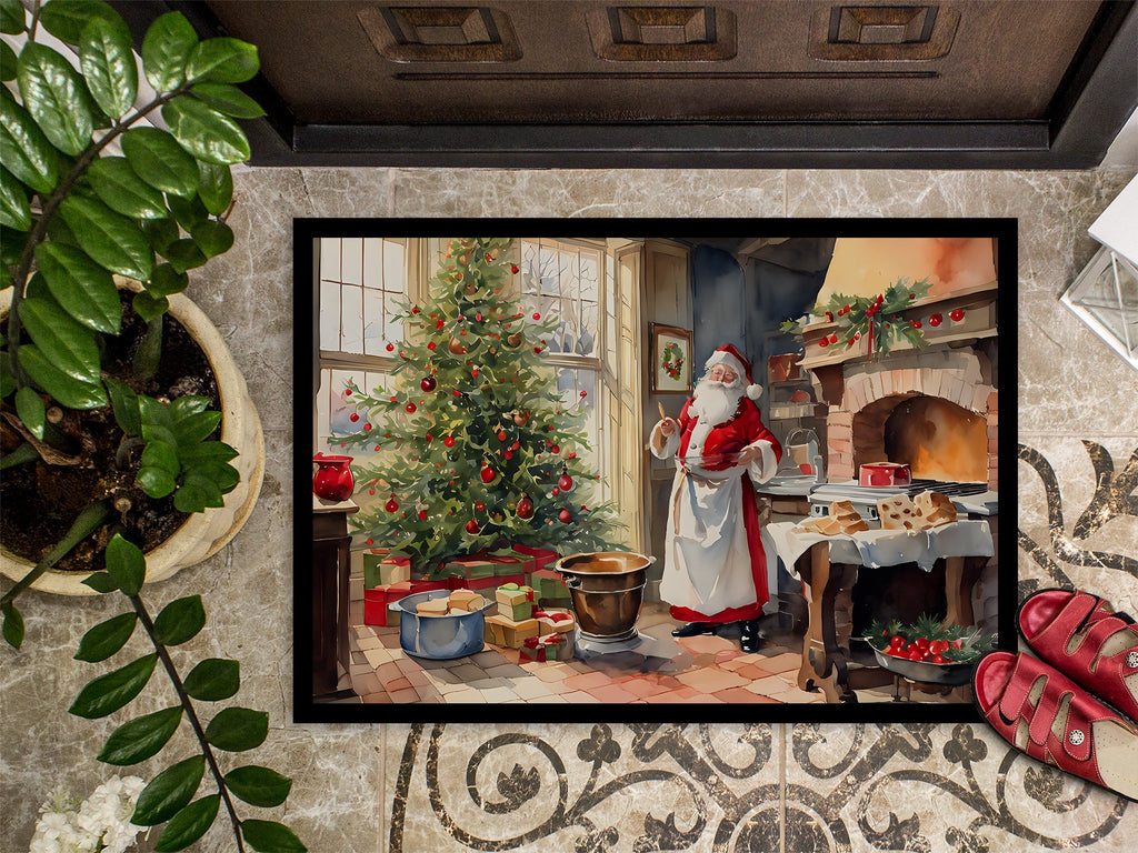 Decorate your space with our Christmas Santa Claus artwork on a Doormat. Welcome your guests in style with our Artwork Door Mat, designed to withstand almost any weather condition. This mat, measuring approximately 24 by 36 inches, is held together by durable black binding tape. Its top layer, composed of polyester felt, is dyed with the eye-catching image you see on the mat. A few layers below provide the mat with stability, while its rubber bottom is stamped to help prevent slipping and ensures safety. Our mat works wonderfully as both an indoor or outdoor door mat. For cleaning, simply hose it off with water or use a power washer - no need for any cleaner that produces suds. Avoid scrubbing with a brush, instead, opt for the vacuum on floor setting. Designed manufactured and printed in the USA, this mat is a perfect addition to your porch, outdoor kitchen, entryway, or any indoor space. Its unique design makes it a charming decorative rug that greets your guests and adds a stylish touch to your home decor.
