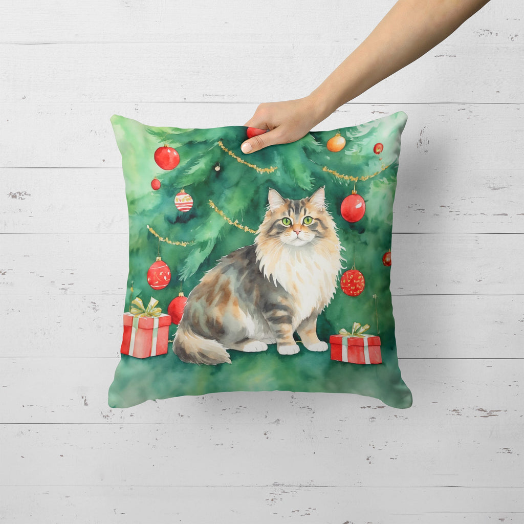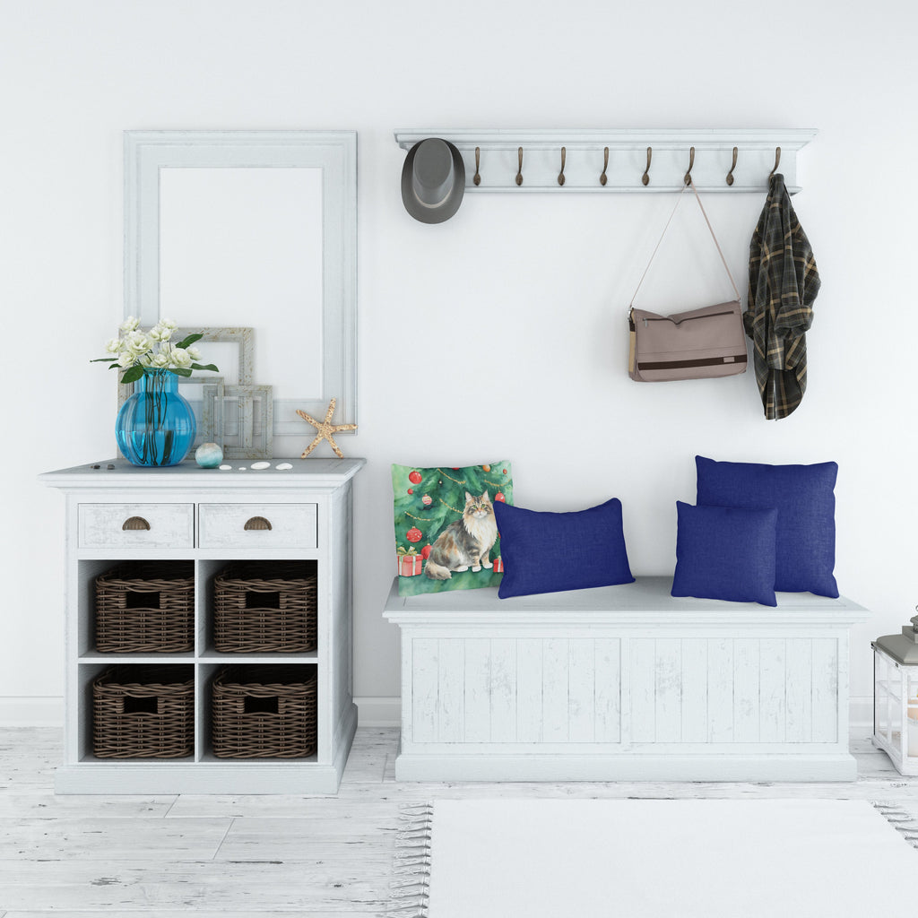 Throw Pillow featuring breed specific Cymric artwork. Celebrate Christmas with this Christmas Pillow. Revitalize your outdoor or indoor living space with Caroline's Treasures 18x18 Fabric Decorative Pillow. With a generously sized dimension of approximately 18 inches by 18 inches, this pillow makes a comfortable and aesthetic addition to any seating area. Made from a unique, water-resistant material developed by Caroline's Treasures, the pillow sham is 100% polyester fabric that's durable and ready to weather any condition. Its vibrant, full-color artwork will not fade over time as it is dyed with color-fast dyes. Whether you place it on your patio furniture, porch, veranda, or indoor couch, its soft canvas fabric ensures a cozy experience. The pillow is handcrafted in the United States, featuring a sham created from three pieces of fabric and a polyester insert for enduring shape and overstuffed comfort. Despite being robustly built to endure the outdoors, it is as soft and snug as your favorite indoor cushions. Please note, as all our pillows are handmade, sizes may vary slightly, adding to the charm of this unique decorative item.