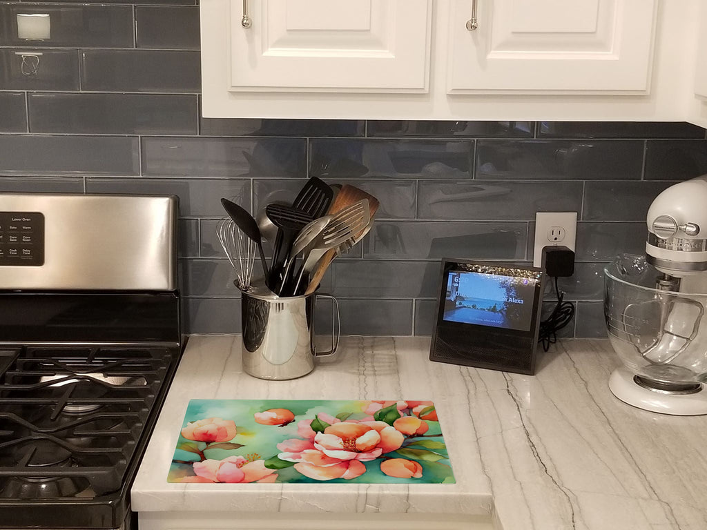Delaware Peach Blossom in Watercolor Glass Cutting Boards – Durable, Decorative Kitchen Art Large