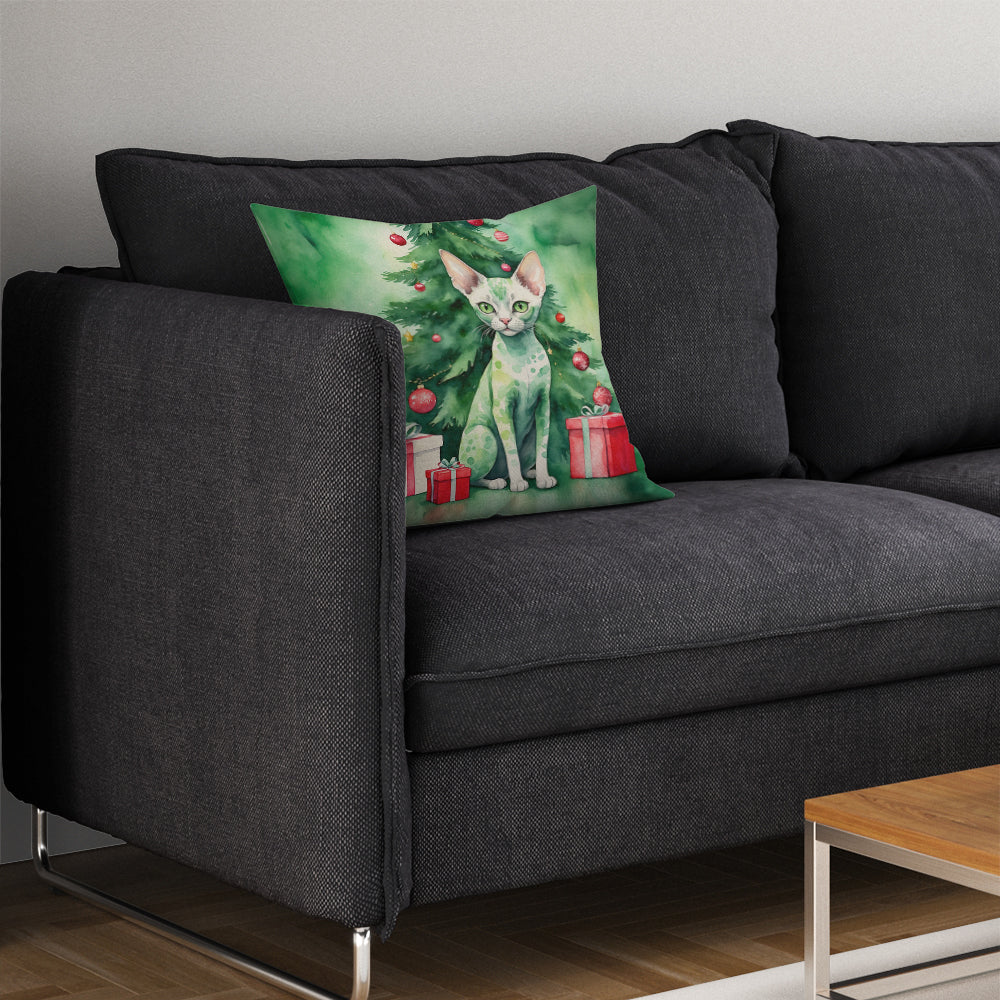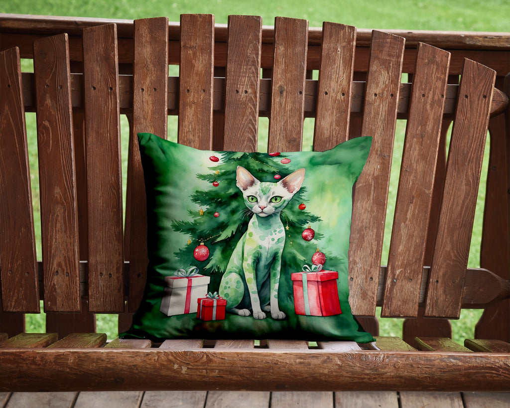 Throw Pillow featuring breed specific Devon Rex artwork. Celebrate Christmas with this Christmas Pillow. Add a touch of vibrancy and comfort to your outdoor seating with Caroline's Treasures Fabric Decorative Pillow. Measuring approximately 14 inches by 14 inches, this outdoor pillow is crafted to elevate the appeal of your patio furniture, infusing it with vivid color and artistic flair. The pillow includes a 100% Polyester Fabric sham filled with a quality pillow form to provide superior comfort. Innovatively made from our brand new material, specifically woven for its water resistance, this pillow is designed for durability. The soft canvas fabric offers versatility in use, fit for your indoor couch or your outdoor patio, porch, or veranda. The fabric is dyed with colorfast dyes built for resilience against weather conditions, ensuring the pillow retains its beauty over time. Constructed by sewing three fabric pieces to create a sham, the polyester insert is then nestled inside to form the pillow, resulting in an overstuffed pillow that maintains its shape. Both the sham and the pillow insert are proudly made in the United States. As the pillows are handcrafted, there may be minor variations in size, further enhancing their unique charm. Experience comfort in style with Caroline's Treasures Fabric Decorative Pillow.