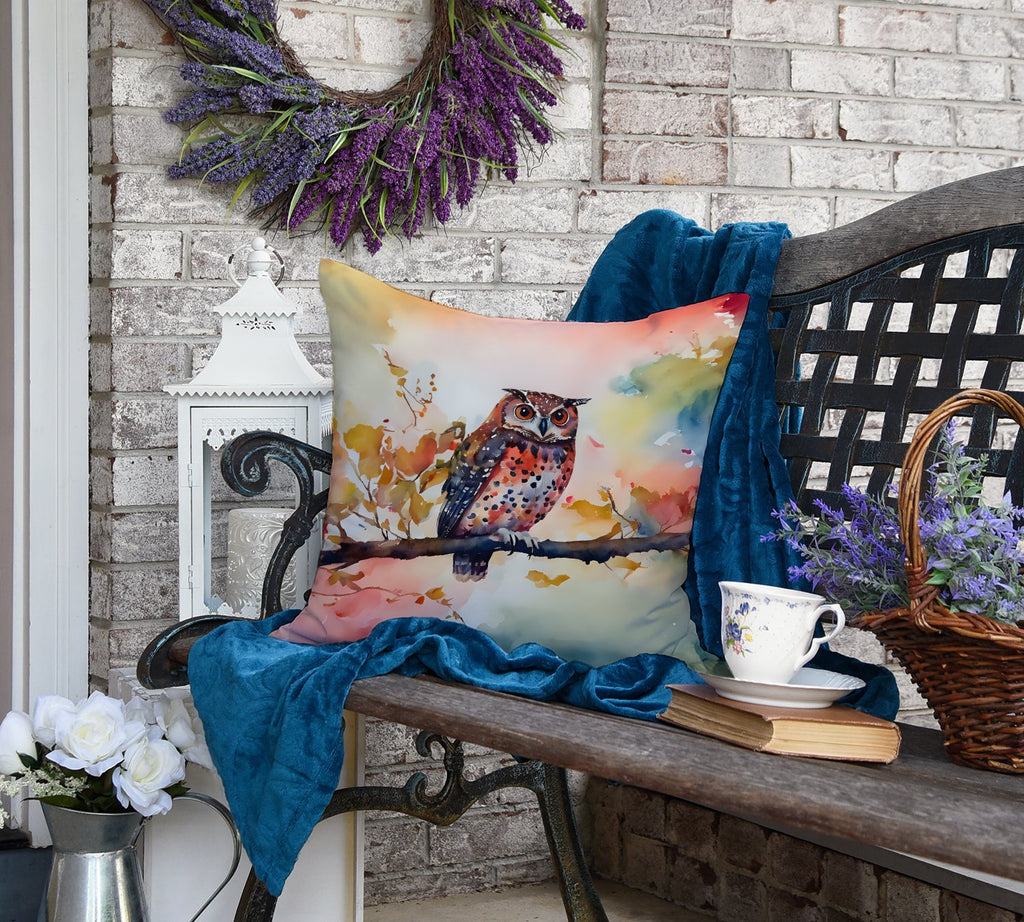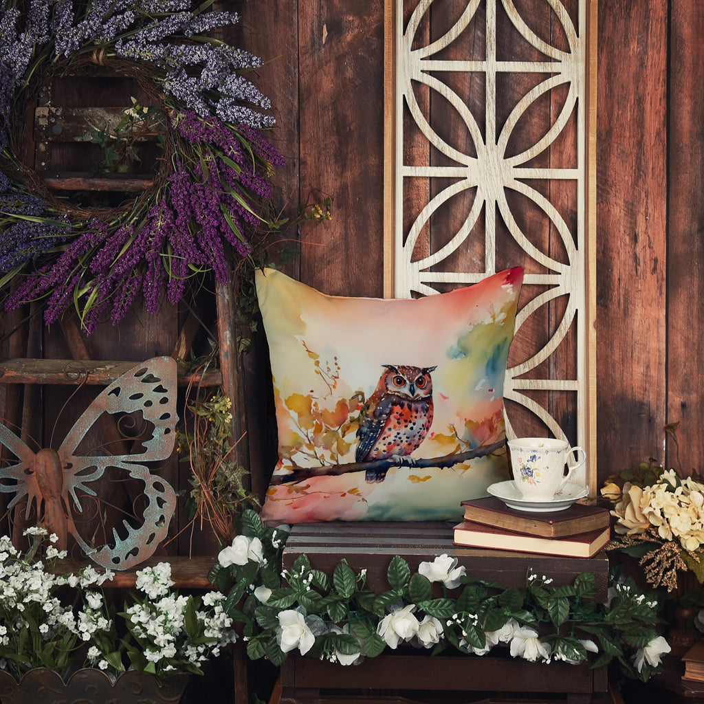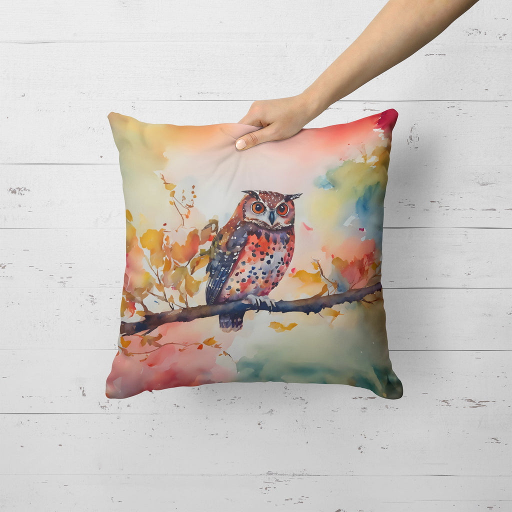 Throw Pillow featuring breed specific Elf Owl artwork. Revitalize your outdoor or indoor living space with Caroline's Treasures 18x18 Fabric Decorative Pillow. With a generously sized dimension of approximately 18 inches by 18 inches, this pillow makes a comfortable and aesthetic addition to any seating area. Made from a unique, water-resistant material developed by Caroline's Treasures, the pillow sham is 100% polyester fabric that's durable and ready to weather any condition. Its vibrant, full-color artwork will not fade over time as it is dyed with color-fast dyes. Whether you place it on your patio furniture, porch, veranda, or indoor couch, its soft canvas fabric ensures a cozy experience. The pillow is handcrafted in the United States, featuring a sham created from three pieces of fabric and a polyester insert for enduring shape and overstuffed comfort. Despite being robustly built to endure the outdoors, it is as soft and snug as your favorite indoor cushions. Please note, as all our pillows are handmade, sizes may vary slightly, adding to the charm of this unique decorative item.