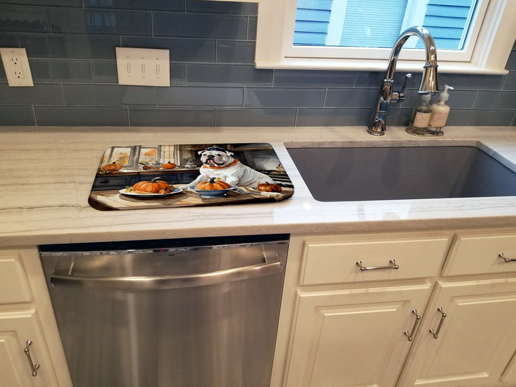English Bulldog Fall Kitchen Pumpkins Dish Drying Mat