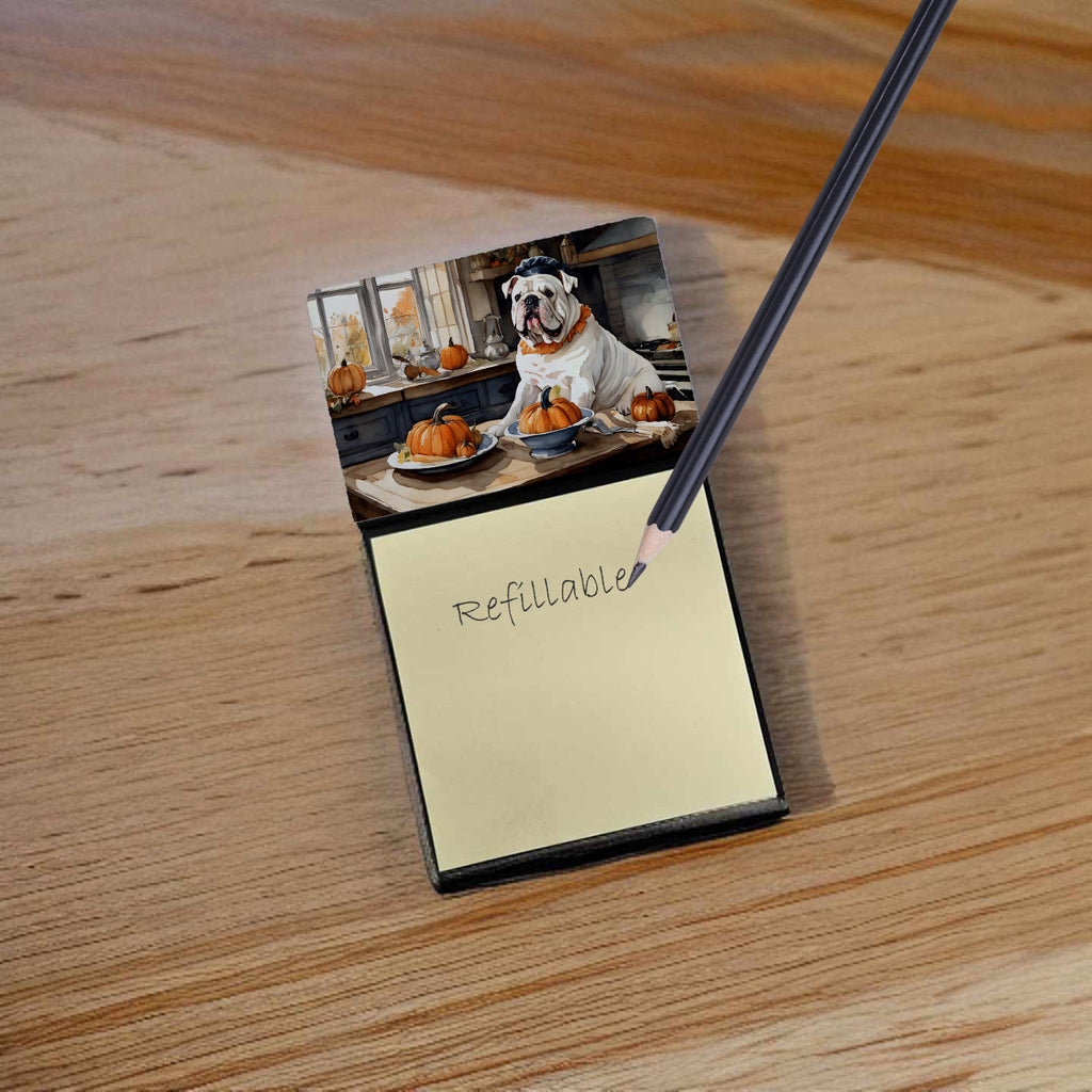 Decorate your space with our Halloween English Bulldog artwork on a Sticky Note Holder. Bring a bit of Fall into your home with a Fall Sticky Note Holder. Add a touch of creativity and flair to your desk with the Decorative Sticky Note Holder from Caroline's Treasures. This uniquely designed sticky note dispenser will not only keep your notes in one place but also add an artistic element to your workspace. The top of the holder features beautiful artwork that is sure to catch the eye. Crafted for convenience, this sticky note holder comes with a small pad of 3-inch x 3-inch sticky notes at the bottom. The holder is designed for easy refilling; simply remove the last sheet of a new sticky note pad and stick it onto the board. This feature ensures you will always have sticky notes at your disposal. This Sticky Note Holder makes a perfect gift. Be it for your colleagues at work, your Facebook friends, or even your dog groomer or hairdresser, this versatile product fits the bill. You can use it for making grocery lists, leaving notes for loved ones, or for jotting down important reminders. The bottom board is rigid and can be magnetized by adding a business card size magnet to the back (sold separately). This makes it even more versatile, allowing you to place it on a refrigerator or any other magnetic surface. With this Sticky Note Holder, you're not only organizing your notes, but also personalizing your space.