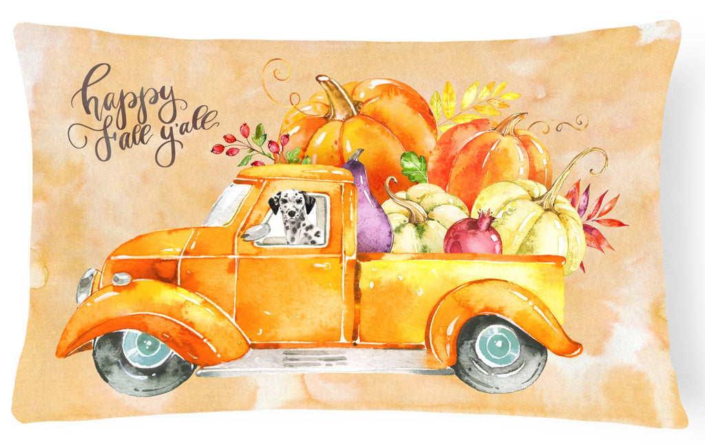 Decorate your space with our Thanksgiving Dalmatian artwork on a Pillow. Bring a bit of Fall into your home with a Fall Pillow. Embrace the fusion of comfort and style with Caroline's Treasures Fabric Decorative Pillow. This 12x16 inch outdoor pillow is designed to complement your patio furniture, adding a splash of color and artistry to your outdoor setting. Constructed with a 100% Polyester Fabric pillow sham filled with a plush pillow form, this cushion is as comfortable as it is durable. Our outdoor pillow utilizes a novel fabric, meticulously woven for enhanced water resistance. This soft canvas material is equally suited for your indoor couch as well as outdoor settings such as the patio, porch, or veranda. To ensure enduring vibrance, we employ colorfast dyes resistant to fading even when subjected to weather elements. The making of this pillow involves the delicate sewing together of three fabric pieces to create a sham, into which a polyester insert is carefully placed. The result is an overstuffed pillow that tenaciously holds its shape. With both the sham and the pillow insert crafted in the United States, these handmade pillows are a testament to superior local craftsmanship. Note that as these pillows are handmade, sizes may slightly vary, enhancing their unique appeal. Enjoy comfort in style with Caroline's Treasures Fabric Decorative Pillow.
