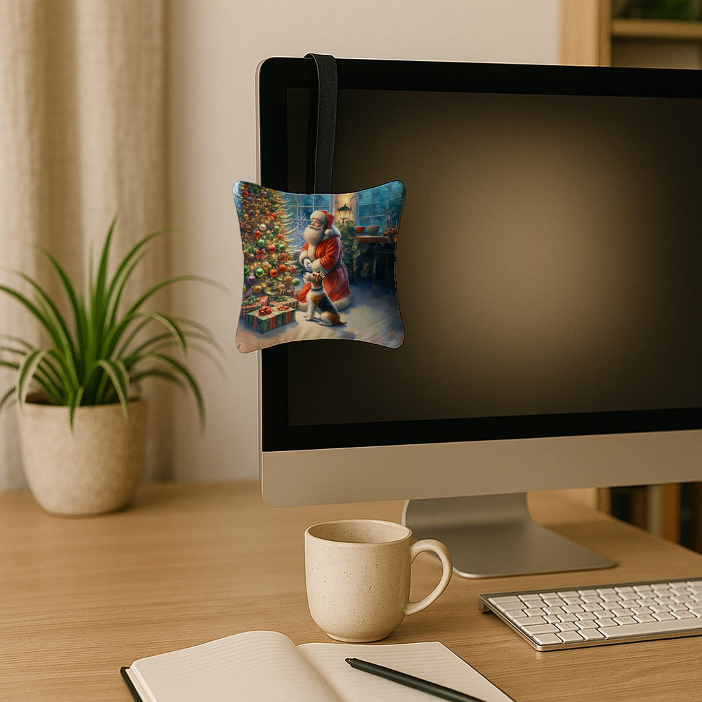 Fox Terrier and Santa Claus Hanging Square Fabric Ornament 3.5 × 3.5