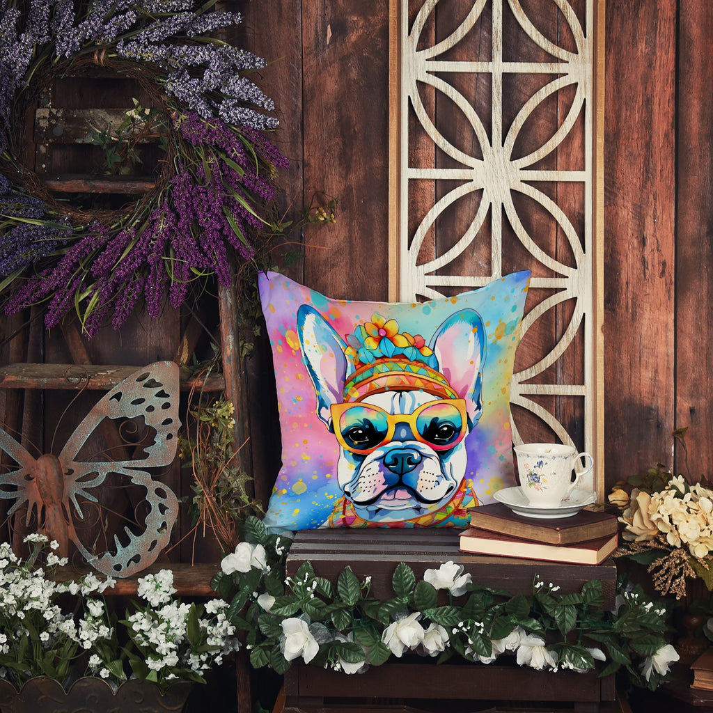 French Bulldog Hippie Dawg Fabric Decorative Pillow