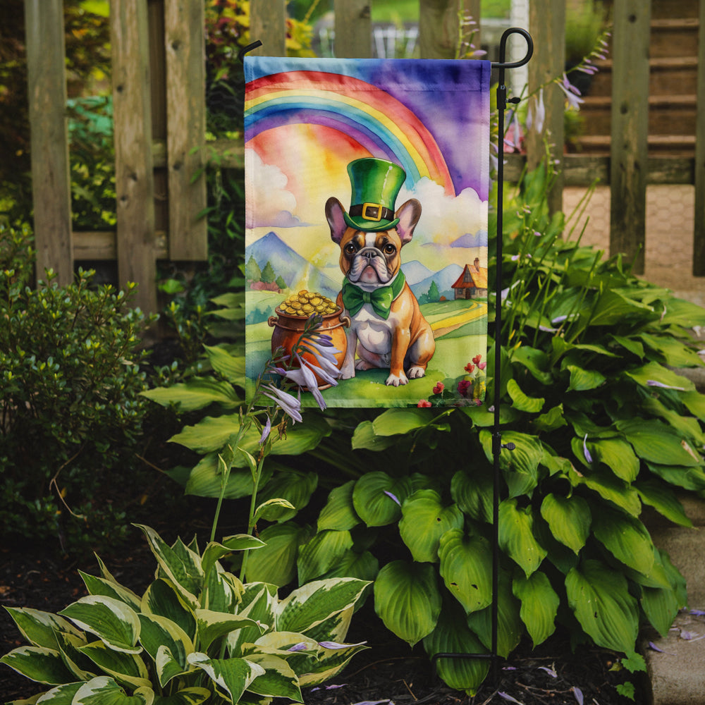 Decorate your space with our St Patrick's Day French Bulldog artwork on a Garden Flag. Enhance the beauty of your garden, patio, or yard with Caroline's Treasures Decorative Garden Flag, proudly made in the USA. Crafted from two pieces of thick, double-sided polyester fabric, this 2-ply garden flag is designed to withstand various weather conditions, making it water-resistant and weatherproof. Featuring correctly readable words on both sides, this garden flag offers a delightful visual experience from any angle. With its heavier weight, it stands out among other garden flags, ensuring stability and durability even in wind, rain, and snow. Measuring approximately 11 1/4 inches by 15 1/2 inches, this flag allows you to personalize your outdoor decor. It comes with a 1 1/2-inch sleeve sewn in, allowing easy attachment to any standard garden flag stand or garden size porch hanger (sold separately). Make a statement in your outdoor space with Caroline's Treasures Decorative Garden Flag, a vibrant and high-quality flag that adds color and personality to your surroundings. Proudly made in the USA, it's a symbol of quality craftsmanship and attention to detail.