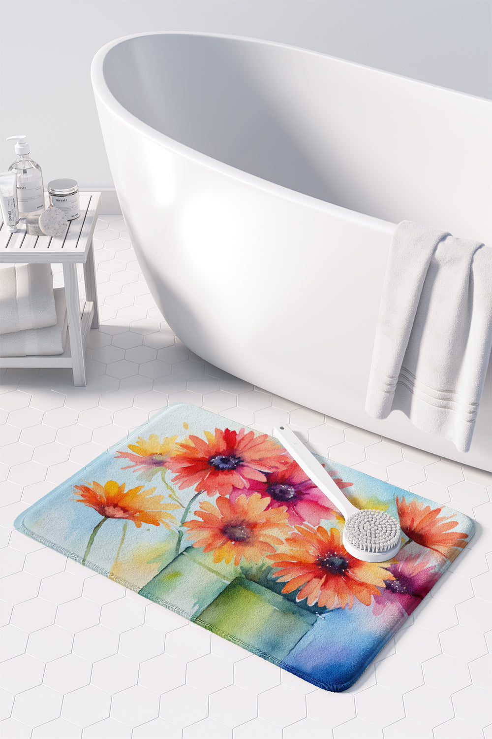 Decorate your space with our Gerbera Daisies artwork on a Floor Mat. Transform your floor into a work of art with Caroline's Treasures' Memory Foam Mat. This mat offers not only a stunning visual appeal but also a luxurious, plush feel that's incredibly comfortable to the touch. It's a versatile, machine-washable mat designed for both bath and kitchen use, ensuring you experience the best in comfort and convenience. Care Instructions: Maintaining this memory foam mat is a breeze. Simply follow the care instructions on the product tag. It's recommended to wash in cold water and dry on a low-temperature setting in the dryer. This ensures the mat retains its quality and longevity, allowing you to enjoy its beauty and comfort for a long time. Caroline's Treasures' Memory Foam Mat Machine Washable is the perfect blend of artistry, comfort, and practicality, making it a standout addition to any space. Upgrade your home decor with this versatile and stylish mat today.
