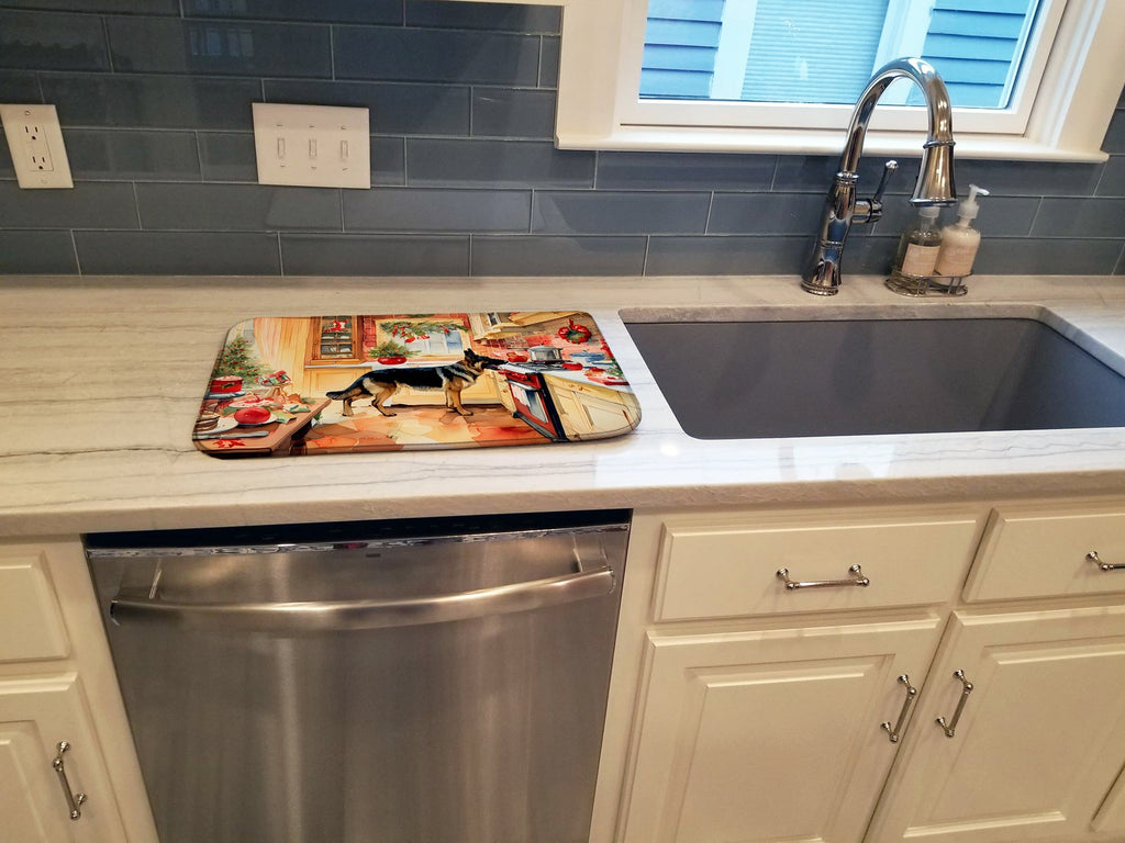 Dish Drying Mat featuring breed specific German Shepherd artwork. Celebrate Christmas with this Christmas Dish Drying Mat. Say goodbye to messy countertops and soggy dish towels with our innovative dish drying mat. Our high-quality dish drying pad is designed to keep your countertops dry while offering a stylish and efficient solution. Whether you're air drying dishes, glasses, stemware, silverware, pots, pans, bottles, or even fruits and vegetables, our dish mat is the perfect choice. The 14 inches x 22 inches size fits most counters and dish drying racks, and the non-slip design ensures stability. Made with water-absorbent polyester and a polyurethane foam insert, our dish drying mat is not only functional but also durable. It's machine washable and printed in the USA for long-lasting use. The beautiful artwork adds flair to your kitchen decor, making it a perfect housewarming gift or present for any occasion. Upgrade your kitchen experience with our absorbent and versatile dish drying mat.
