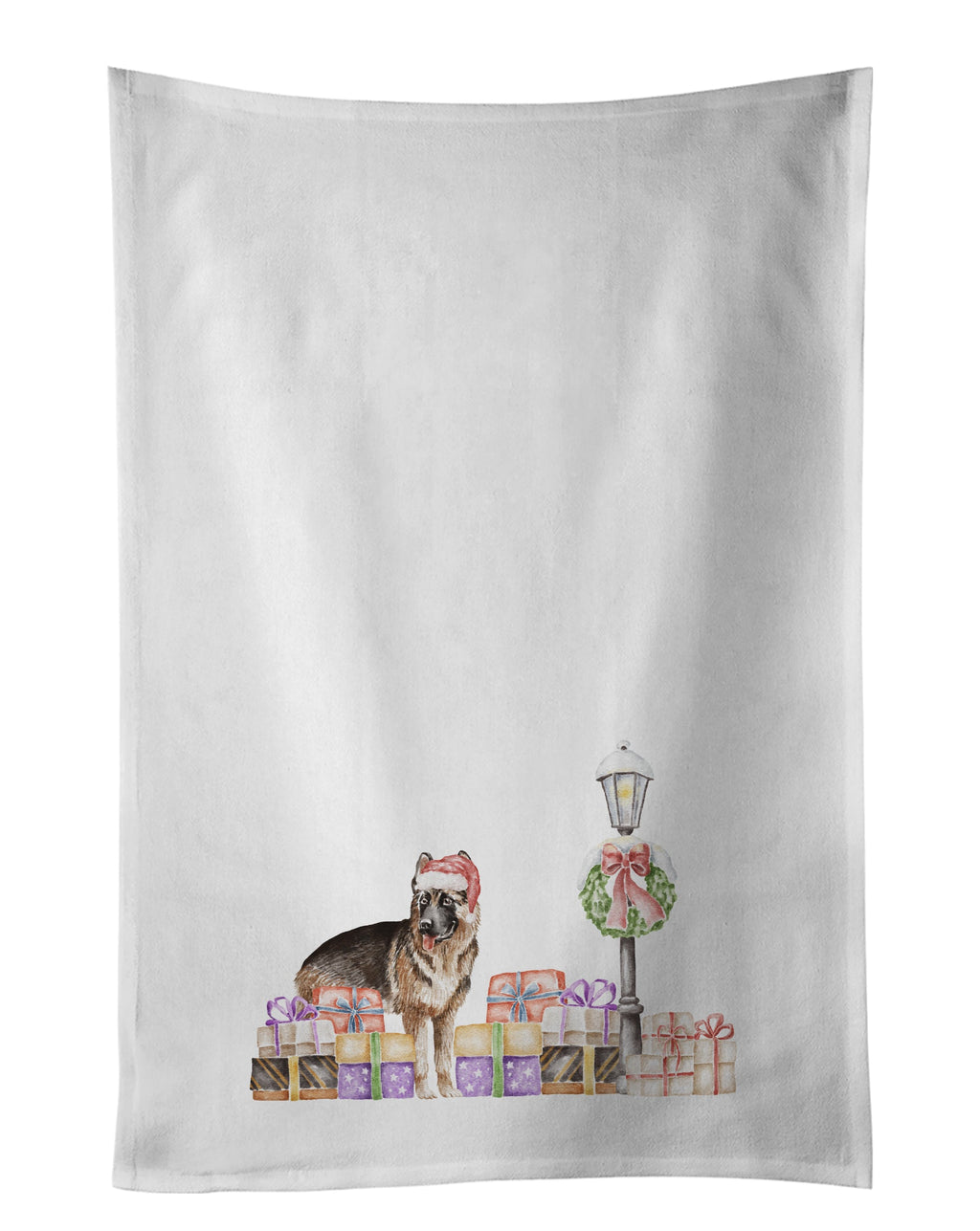 Decorate your space with our Christmas German Shepherd artwork on a Kitchen Cotton Towels. Spruce up your kitchen decor with Caroline's Treasures Decorative White Kitchen Towel Set. This set of two dish towels showcases beautiful artwork from one of our talented artists, making them both practical and visually appealing. These towels are crafted from 100% cotton, offering excellent absorbency and durability, making them ideal for any kitchen task. Each white towel measures 19 inches by 28 inches, providing ample coverage for drying dishes or wiping up spills. The standout feature of these towels is the full-color artwork design printed on each one. They can serve as a vibrant accent in your kitchen, turning a functional item into a delightful piece of decor. When it comes to care, these towels are machine washable in cold water and can be dried on low heat. Remember to always use a pressing cloth when pressing the design, and avoid using bleach on the decorated towel. The Decorative White Kitchen Towel Set makes a great gift or a stylish addition to your own kitchen.