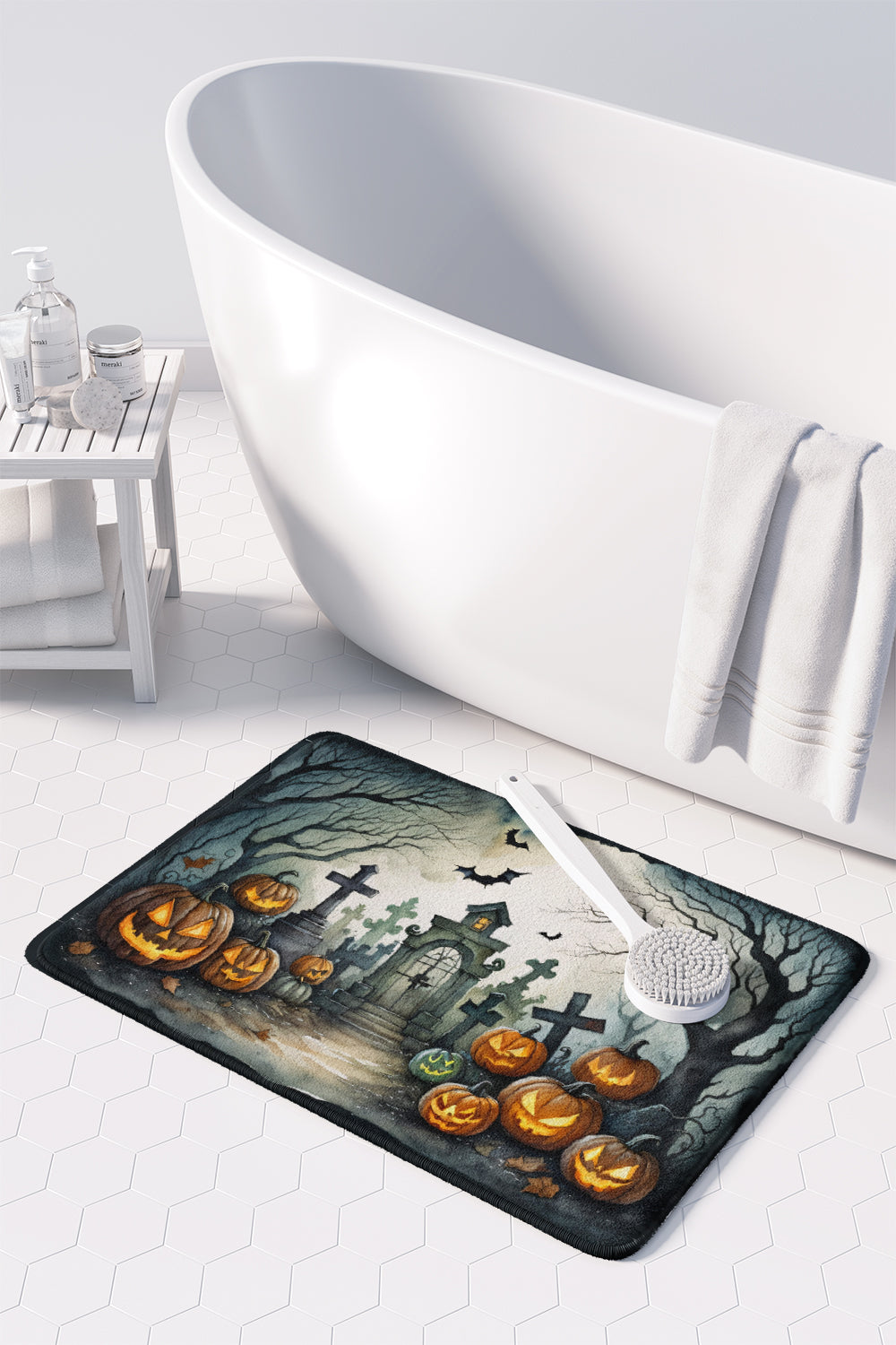 Decorate your space with our Halloween artwork on a Floor Mat. Transform your floor into a work of art with Caroline's Treasures' Memory Foam Mat. This mat offers not only a stunning visual appeal but also a luxurious, plush feel that's incredibly comfortable to the touch. It's a versatile, machine-washable mat designed for both bath and kitchen use, ensuring you experience the best in comfort and convenience. Care Instructions: Maintaining this memory foam mat is a breeze. Simply follow the care instructions on the product tag. It's recommended to wash in cold water and dry on a low-temperature setting in the dryer. This ensures the mat retains its quality and longevity, allowing you to enjoy its beauty and comfort for a long time. Caroline's Treasures' Memory Foam Mat Machine Washable is the perfect blend of artistry, comfort, and practicality, making it a standout addition to any space. Upgrade your home decor with this versatile and stylish mat today.