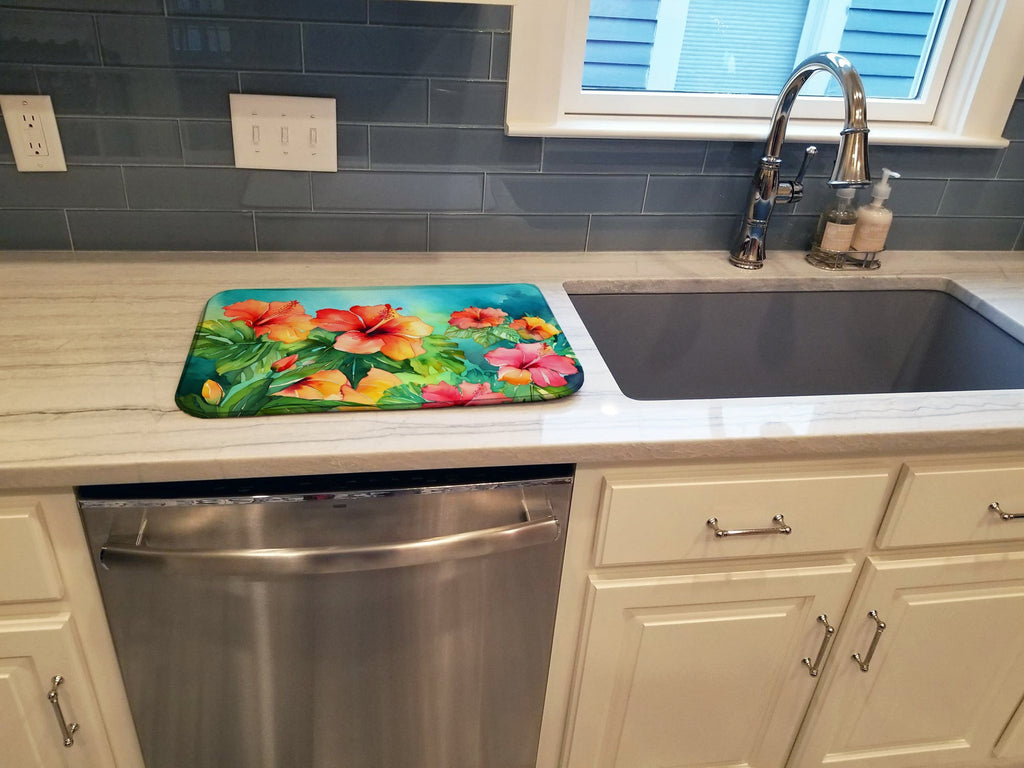 Dish Drying Mat featuring breed specific Hawaii Hawaiian Hibiscus artwork. Say goodbye to messy countertops and soggy dish towels with our innovative dish drying mat. Our high-quality dish drying pad is designed to keep your countertops dry while offering a stylish and efficient solution. Whether you're air drying dishes, glasses, stemware, silverware, pots, pans, bottles, or even fruits and vegetables, our dish mat is the perfect choice. The 14 inches x 22 inches size fits most counters and dish drying racks, and the non-slip design ensures stability. Made with water-absorbent polyester and a polyurethane foam insert, our dish drying mat is not only functional but also durable. It's machine washable and printed in the USA for long-lasting use. The beautiful artwork adds flair to your kitchen decor, making it a perfect housewarming gift or present for any occasion. Upgrade your kitchen experience with our absorbent and versatile dish drying mat.