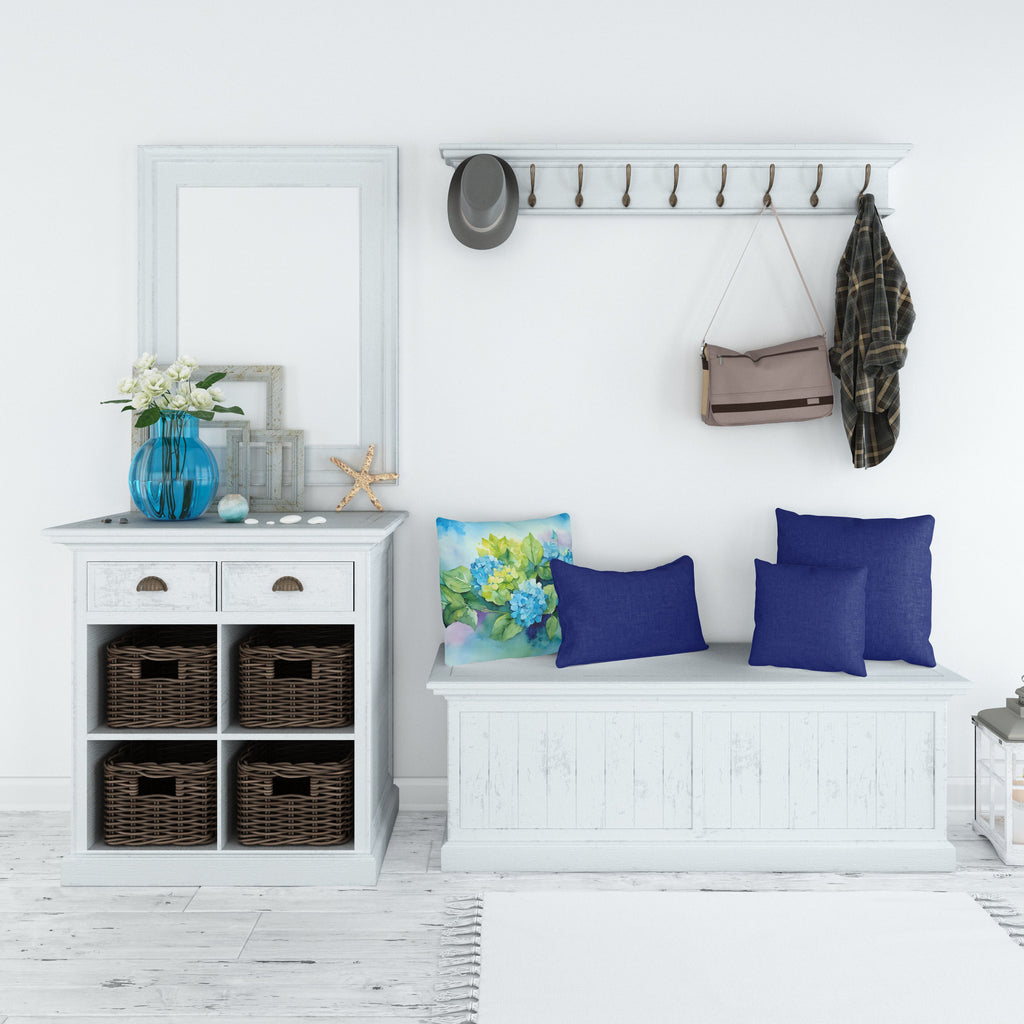 Throw Pillow featuring breed specific Hydrangeas artwork. Revitalize your outdoor or indoor living space with Caroline's Treasures 18x18 Fabric Decorative Pillow. With a generously sized dimension of approximately 18 inches by 18 inches, this pillow makes a comfortable and aesthetic addition to any seating area. Made from a unique, water-resistant material developed by Caroline's Treasures, the pillow sham is 100% polyester fabric that's durable and ready to weather any condition. Its vibrant, full-color artwork will not fade over time as it is dyed with color-fast dyes. Whether you place it on your patio furniture, porch, veranda, or indoor couch, its soft canvas fabric ensures a cozy experience. The pillow is handcrafted in the United States, featuring a sham created from three pieces of fabric and a polyester insert for enduring shape and overstuffed comfort. Despite being robustly built to endure the outdoors, it is as soft and snug as your favorite indoor cushions. Please note, as all our pillows are handmade, sizes may vary slightly, adding to the charm of this unique decorative item.