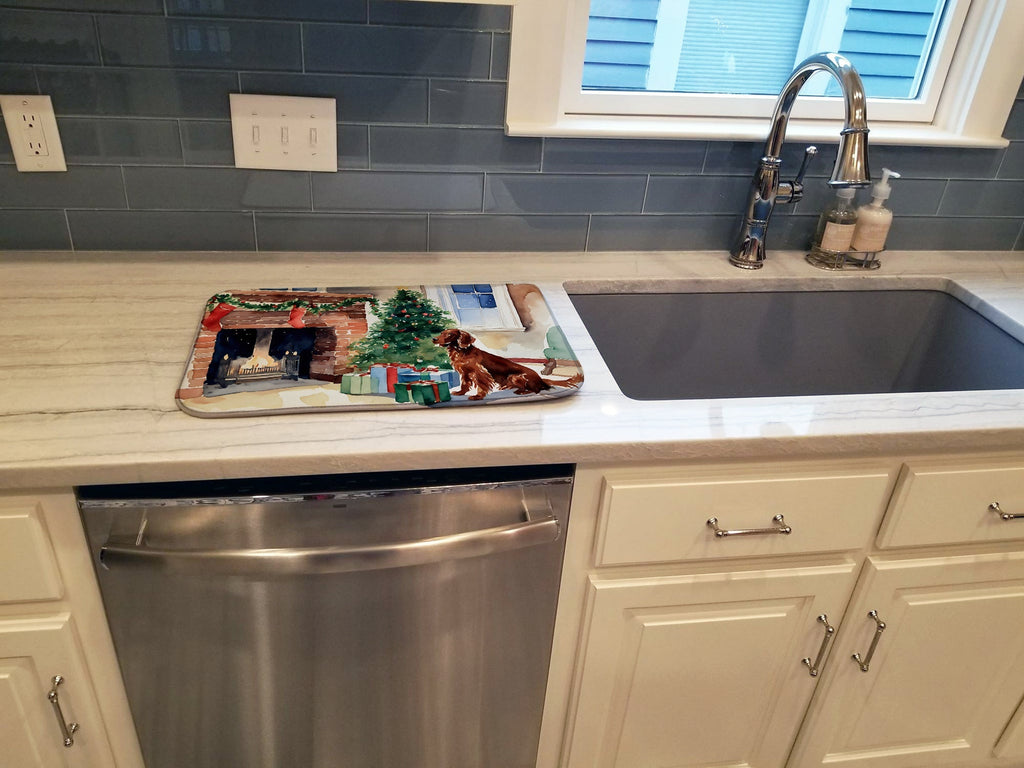 Dish Drying Mat featuring breed specific Irish Setter artwork. Celebrate Christmas with this Christmas Dish Drying Mat. Say goodbye to messy countertops and soggy dish towels with our innovative dish drying mat. Our high-quality dish drying pad is designed to keep your countertops dry while offering a stylish and efficient solution. Whether you're air drying dishes, glasses, stemware, silverware, pots, pans, bottles, or even fruits and vegetables, our dish mat is the perfect choice. The 14 inches x 22 inches size fits most counters and dish drying racks, and the non-slip design ensures stability. Made with water-absorbent polyester and a polyurethane foam insert, our dish drying mat is not only functional but also durable. It's machine washable and printed in the USA for long-lasting use. The beautiful artwork adds flair to your kitchen decor, making it a perfect housewarming gift or present for any occasion. Upgrade your kitchen experience with our absorbent and versatile dish drying mat.