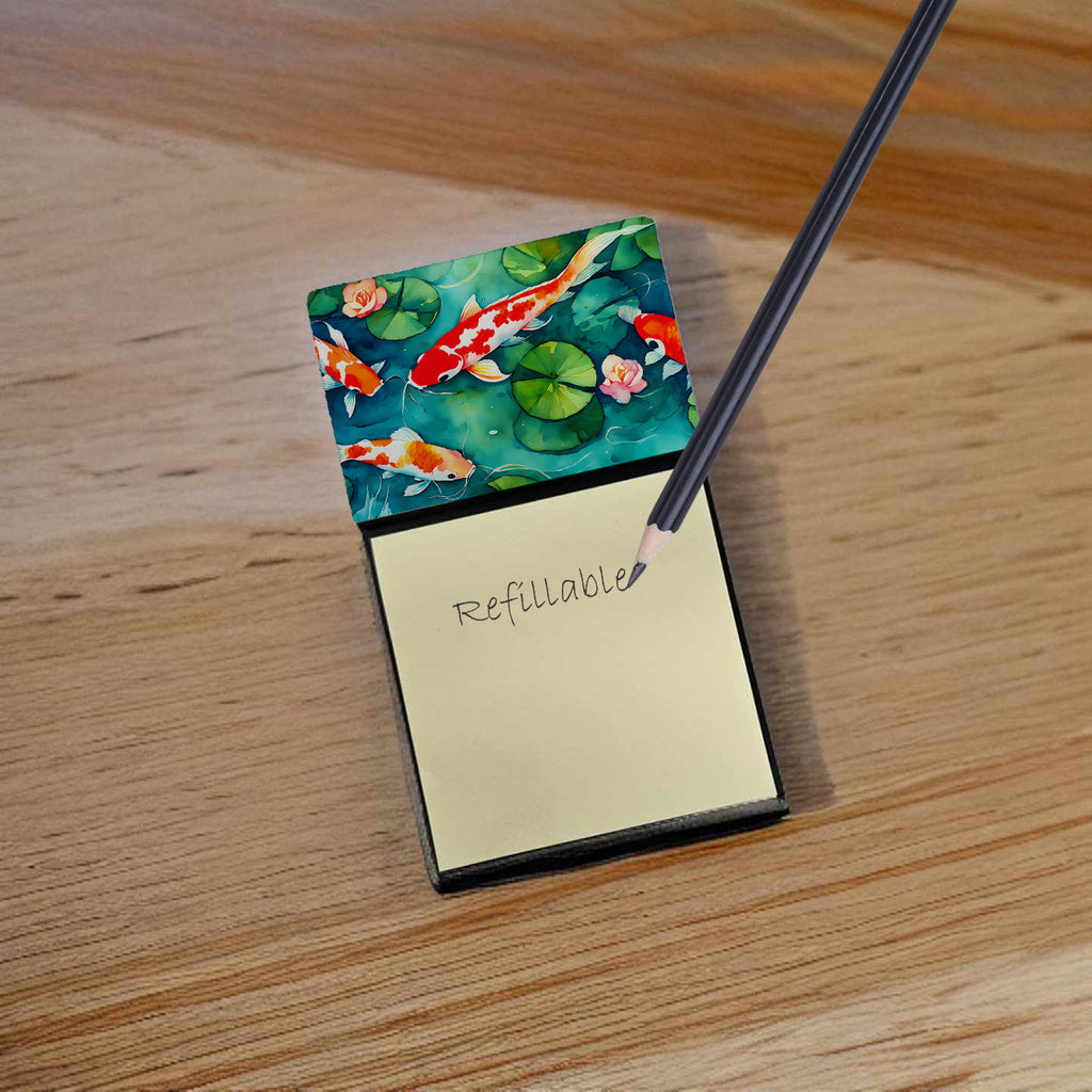 Decorate your space with our Koi Fish artwork on a Sticky Note Holder. Add a touch of creativity and flair to your desk with the Decorative Sticky Note Holder from Caroline's Treasures. This uniquely designed sticky note dispenser will not only keep your notes in one place but also add an artistic element to your workspace. The top of the holder features beautiful artwork that is sure to catch the eye. Crafted for convenience, this sticky note holder comes with a small pad of 3-inch x 3-inch sticky notes at the bottom. The holder is designed for easy refilling; simply remove the last sheet of a new sticky note pad and stick it onto the board. This feature ensures you will always have sticky notes at your disposal. This Sticky Note Holder makes a perfect gift. Be it for your colleagues at work, your Facebook friends, or even your dog groomer or hairdresser, this versatile product fits the bill. You can use it for making grocery lists, leaving notes for loved ones, or for jotting down important reminders. The bottom board is rigid and can be magnetized by adding a business card size magnet to the back (sold separately). This makes it even more versatile, allowing you to place it on a refrigerator or any other magnetic surface. With this Sticky Note Holder, you're not only organizing your notes, but also personalizing your space.