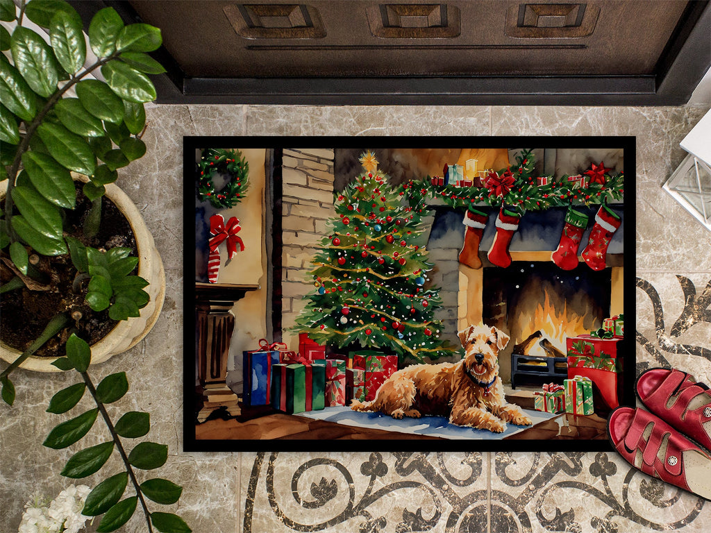 Decorate your space with our Christmas Lakeland Terrier artwork on a Doormat. Welcome your guests in style with our Artwork Door Mat, designed to withstand almost any weather condition. This mat, measuring approximately 24 by 36 inches, is held together by durable black binding tape. Its top layer, composed of polyester felt, is dyed with the eye-catching image you see on the mat. A few layers below provide the mat with stability, while its rubber bottom is stamped to help prevent slipping and ensures safety. Our mat works wonderfully as both an indoor or outdoor door mat. For cleaning, simply hose it off with water or use a power washer - no need for any cleaner that produces suds. Avoid scrubbing with a brush, instead, opt for the vacuum on floor setting. Designed manufactured and printed in the USA, this mat is a perfect addition to your porch, outdoor kitchen, entryway, or any indoor space. Its unique design makes it a charming decorative rug that greets your guests and adds a stylish touch to your home decor.