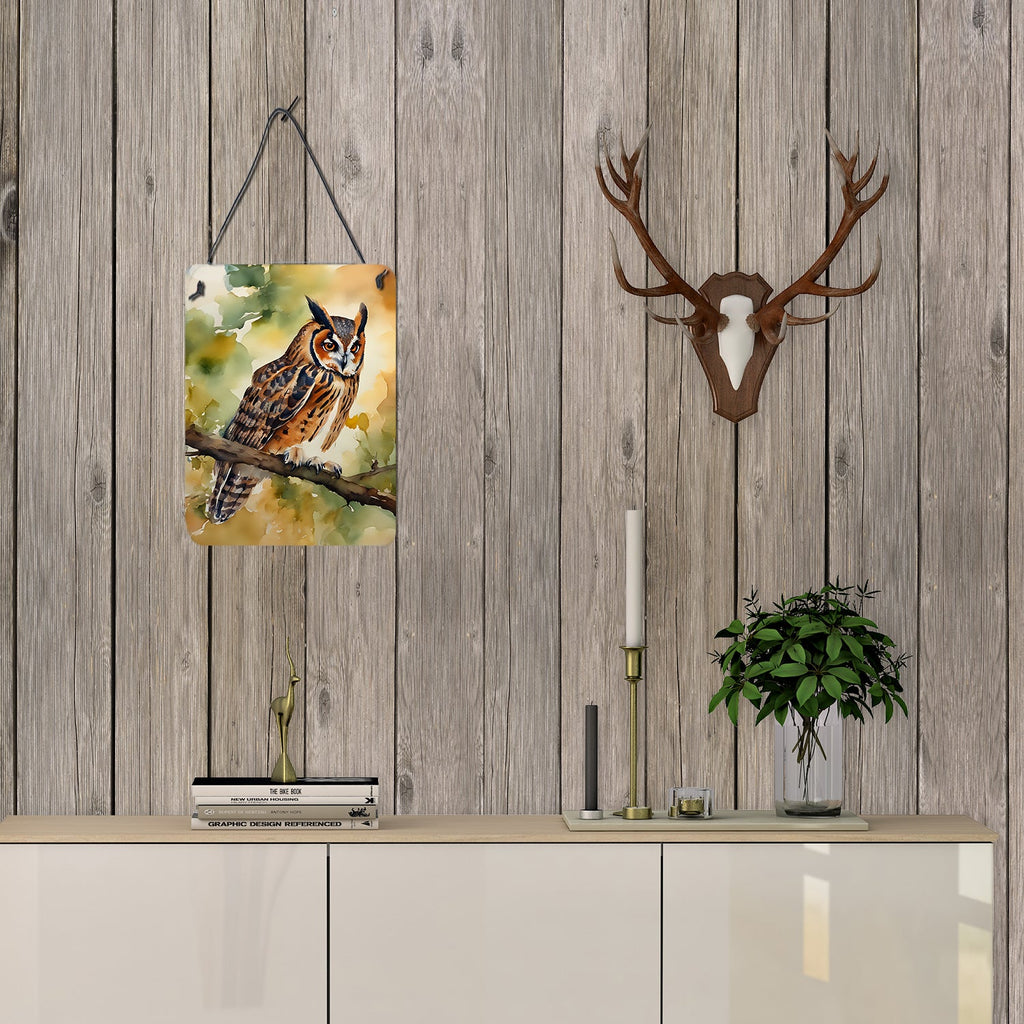 Wall or Door Hanging Prints featuring breed specific Long-Eared Owl artwork. Spruce up your space with our Indoor or Outdoor Aluminum Artwork Prints. Designed to brighten your kitchen, bathroom, office, or outdoor areas like patios and porches, these prints offer a unique way to decorate your home or workspace. Measuring 12 by 16 inches, the prints are vibrant, full color, and bring an element of artistry to any setting. What makes these prints special is their durability and resistance to the elements. If placed outside, they can withstand direct sunlight for a considerable time before showing signs of fading. Crafted from rust and fade-resistant aluminum, these prints are built to last and maintain their vibrant colors. Each print comes with a black hanging rope and rounded corners for safety. The back of the print showcases a brushed silver color, adding a touch of sophistication. The lightweight design allows easy hanging with virtually any nail or screw, making installation a breeze. Whether indoors or outdoors, these prints add a distinctive touch to any space.
